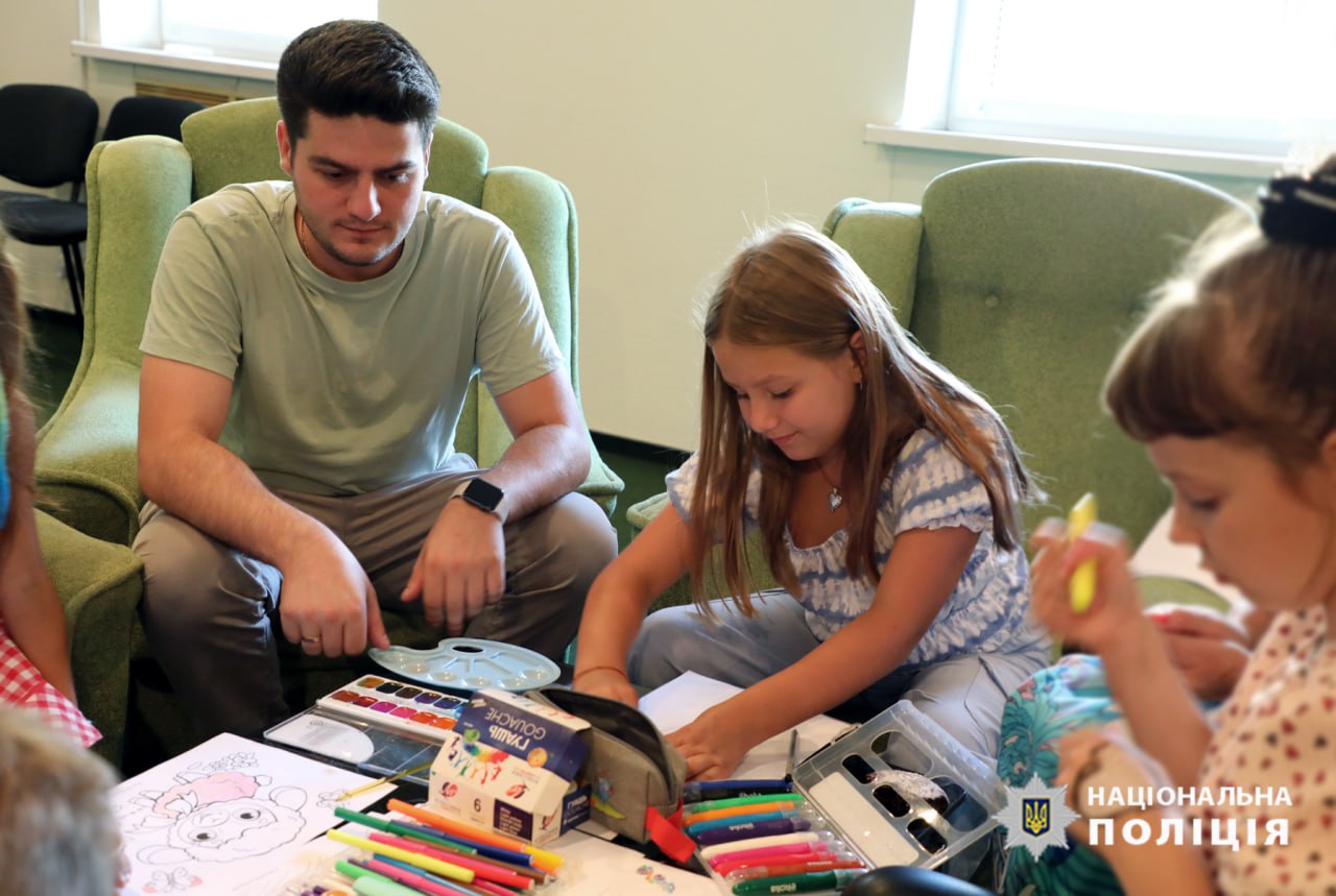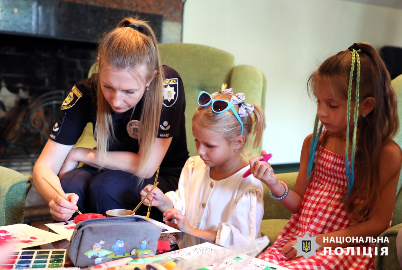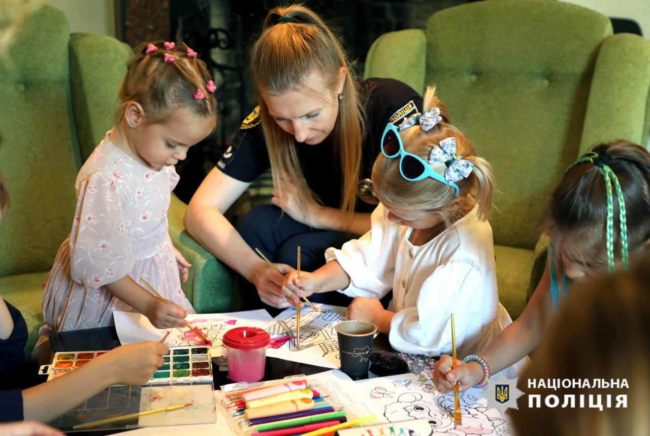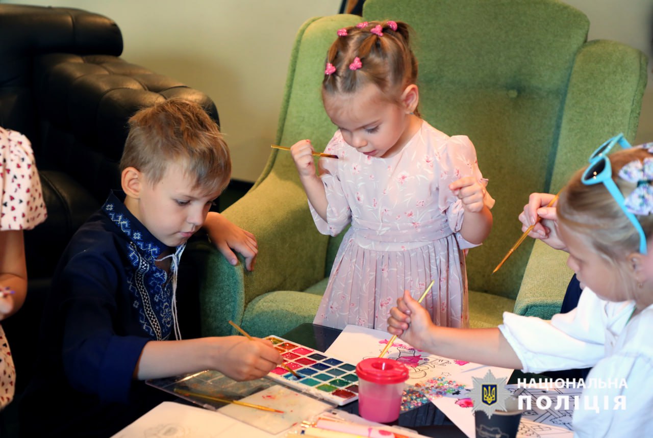 Для дітей поліцейські підготували цікаві спільні заняття. За ними й продовжили спілкування. Вони малювали, грали в ігри та багато говорили. Робота усіх захопила. Приємно було спостерігати за усміхненими дитячими обличчями. Дитячі малюнки поліцейські психологи залишили собі на згадку про цей день.