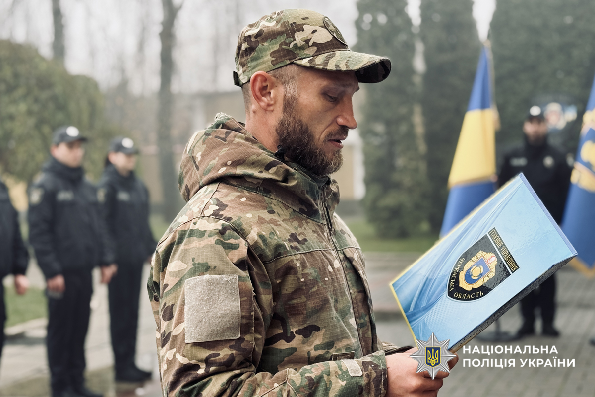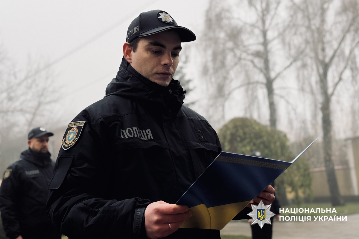 Урочистим моментом для новобранців стало вручення спеціальних жетонів. Їх привітали офіцери: командир підрозділу поліції особливого призначення (стрілецький) ГУНП в Черкаській області Олександр Черкавський та начальник управління кадрового забезпечення ГУНП в Черкаській області Іван Давиденко.