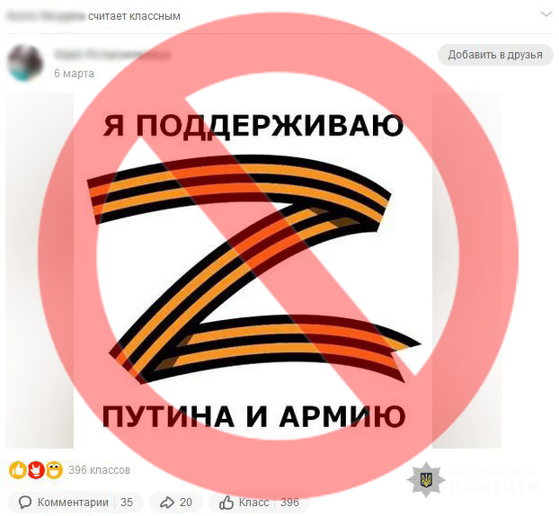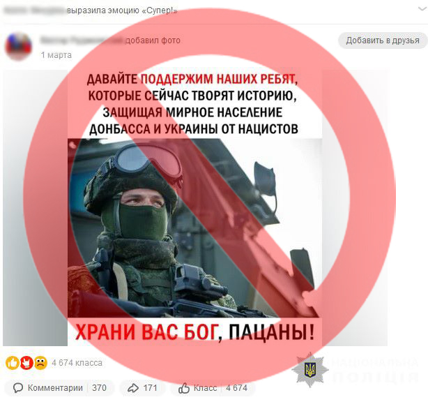 Під час проведення обшуку працівниками поліції було виявлено та вилучено комп’ютерну техніку з обліковим записом «прихильниці руського миру» при огляді якого виявлено публікації про виправдання російської агресії. У скоєному жінка зізналася.