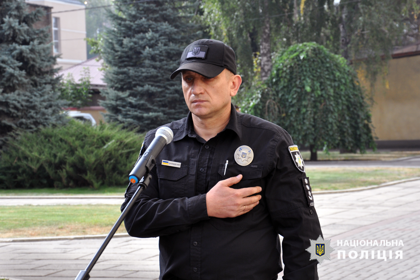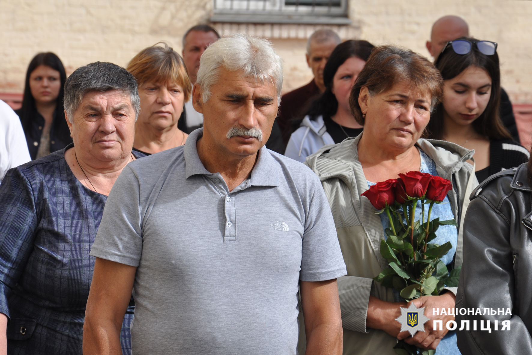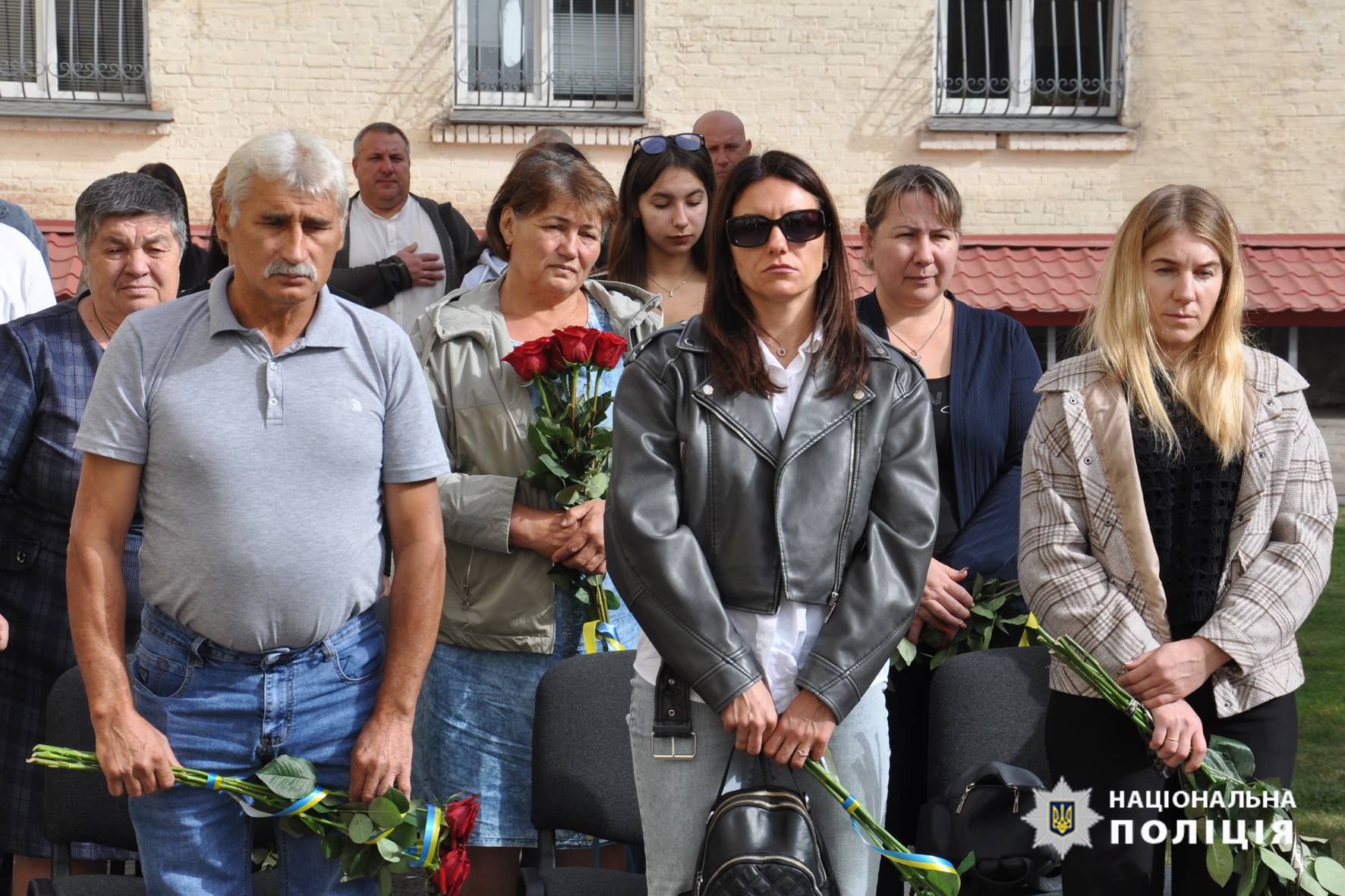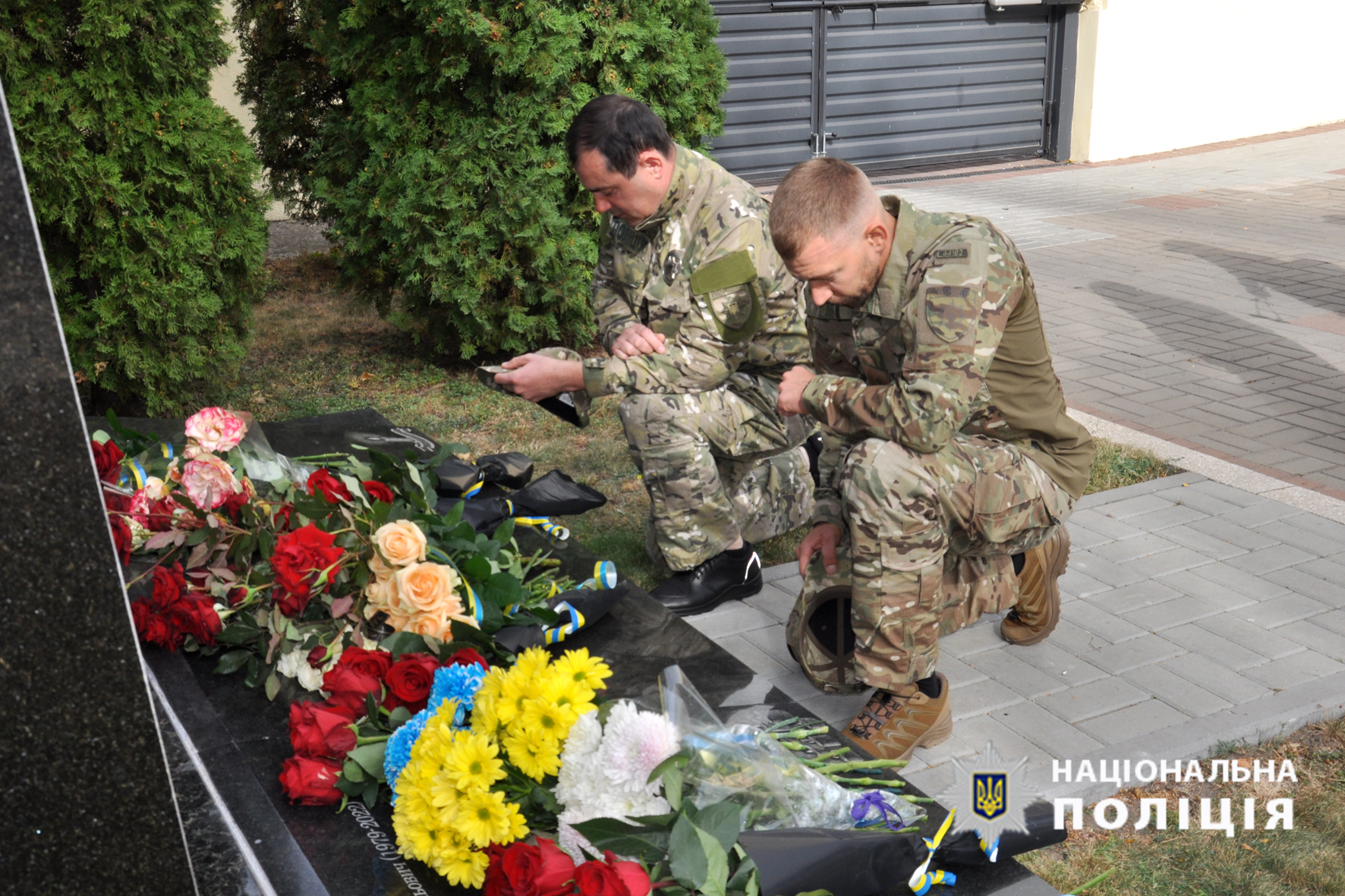 Памʼятний захід в День захисників та захисниць України закінчили покладанням квітів до пам’ятного знаку, де в граніті навіки закарбовані імена загиблих поліцейських.
