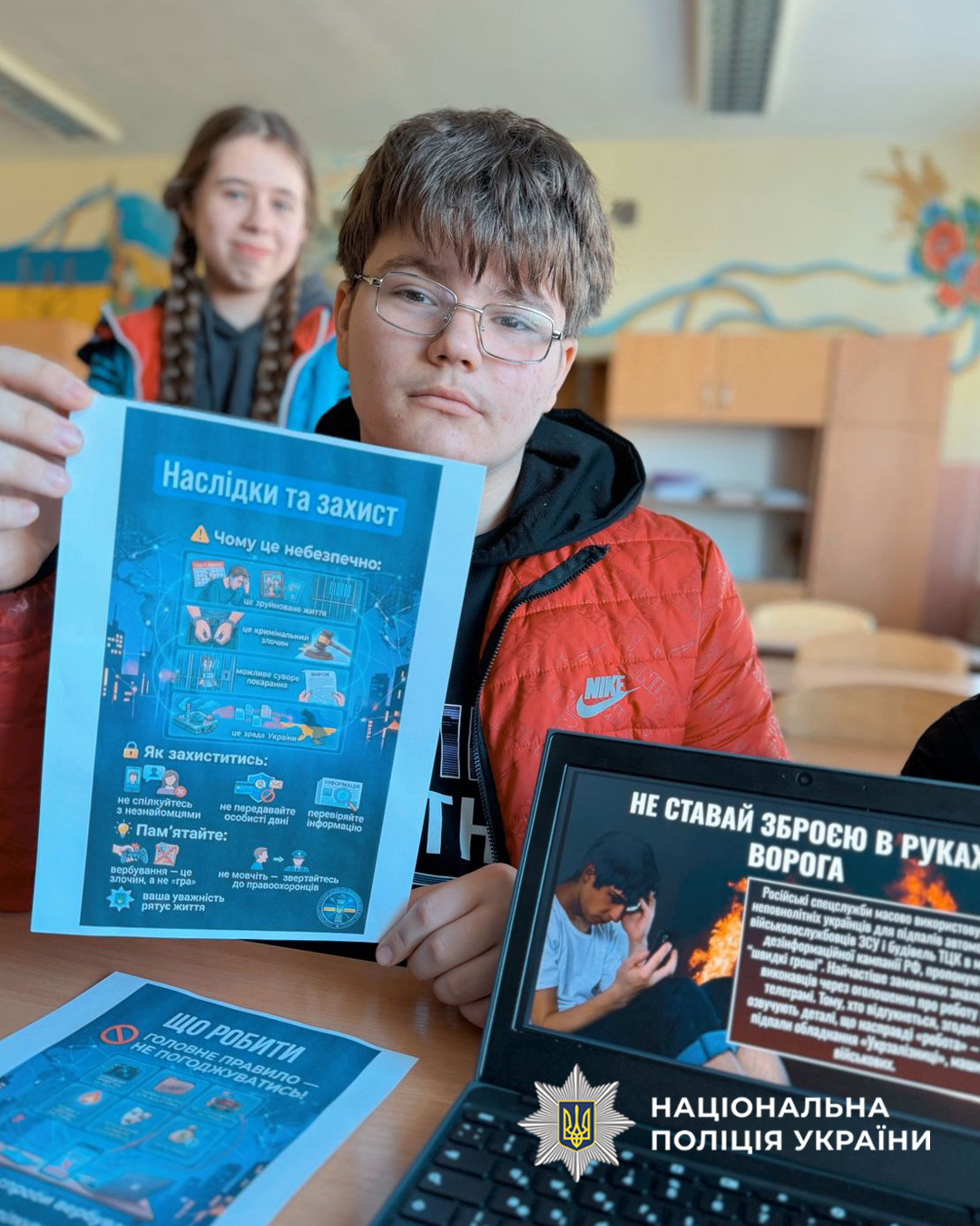 Особливу увагу поліцейські приділили темі вербування підлітків через інтернет. Учням пояснили, що обіцянки «легкого заробітку» можуть бути частиною злочинних схем, а участь у таких діях тягне за собою серйозну відповідальність.