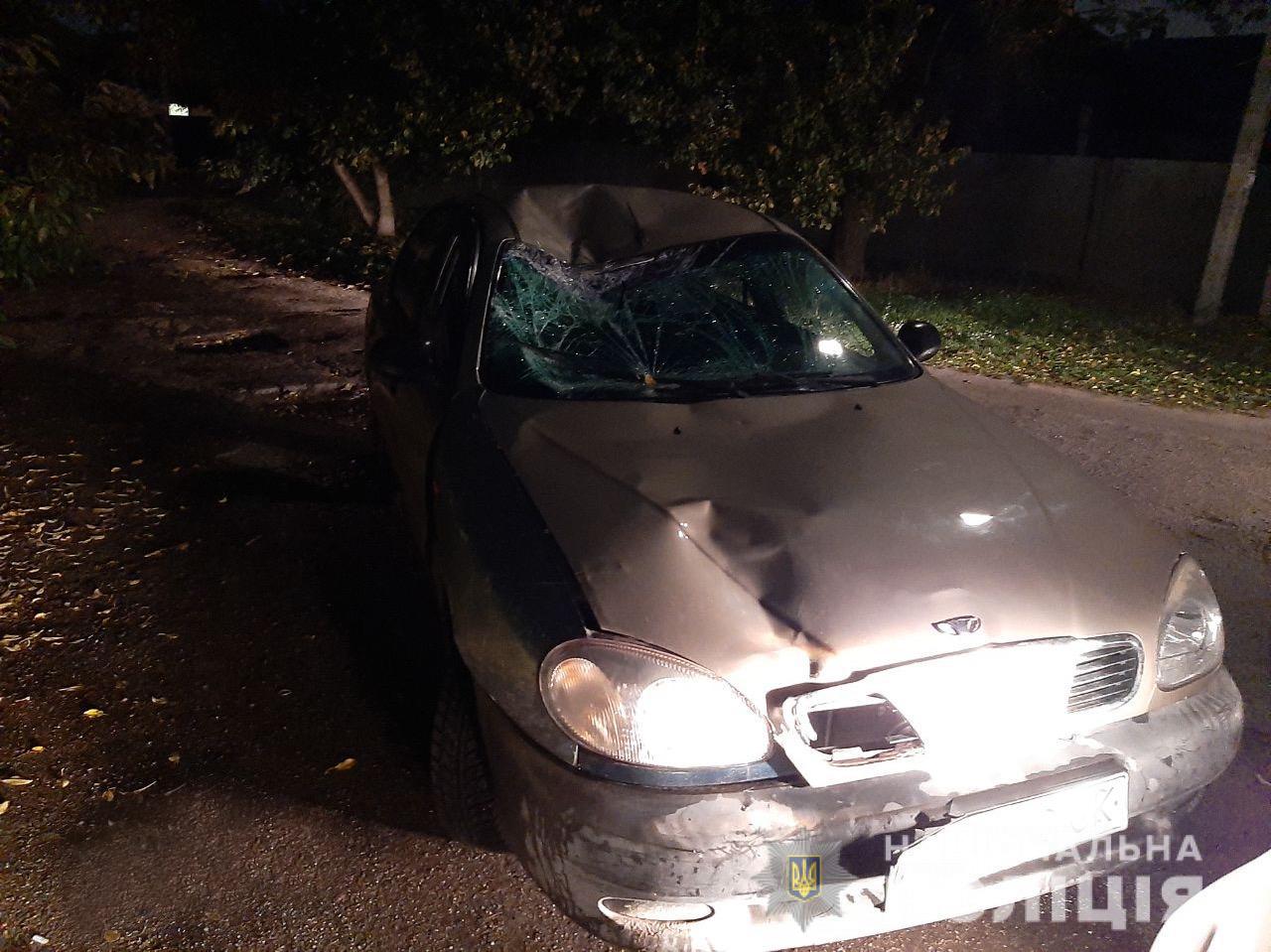 Правоохоронці вилучили частки від автомобіля, які були залишені на місці аварії, та розпочали пошуки автомобіля і водія причетного до ДТП.