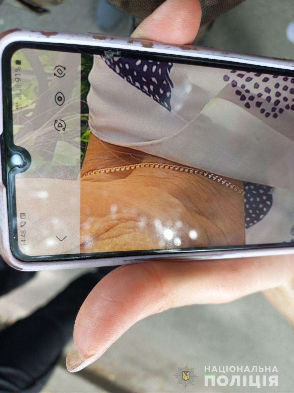 Грабіж стався 27 серпня на вулиці Надпільній у Черкасах. Близько 14:00 години невідомий чоловік переслідував літню жінку. Це зафіксували камери спостереження з приватних будинків. Коли пенсіонерка майже дійшла під’їзду, зловмисник скоїв на неї напад та зірвав з шиї золотий ланцюжок із хрестиком. Нападник втік, а 82-річна черкащанка викликала поліцію.