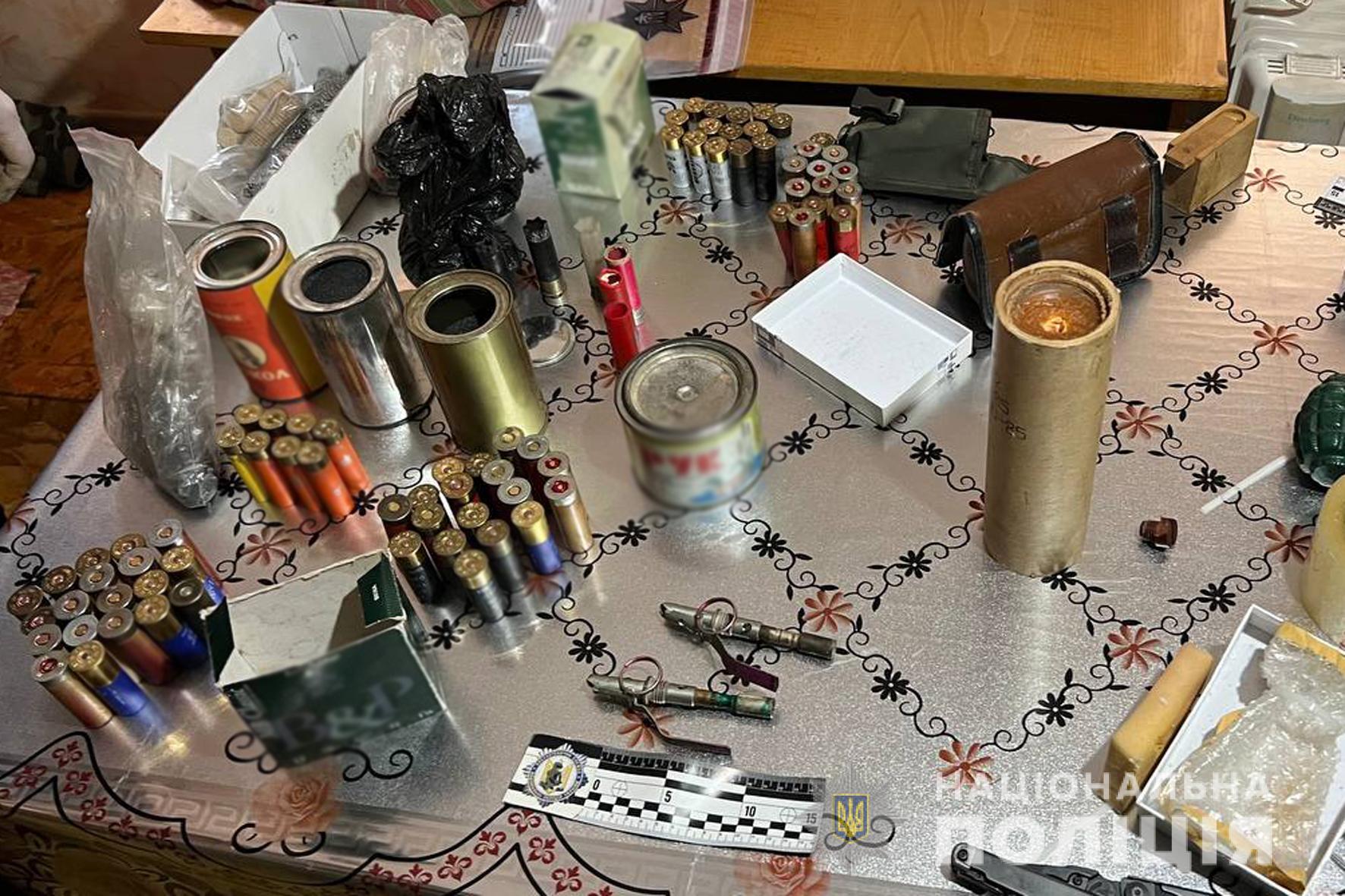 Слідчі також провели санкціонований обшук і вилучили належні йому дві мисливські гладкоствольні рушниці, гільзи, патрони, банки з порохом, а також працівники вибухотехнічної служби ГУНП в Черкаській області виявили та вилучили гранату «Ф-1».