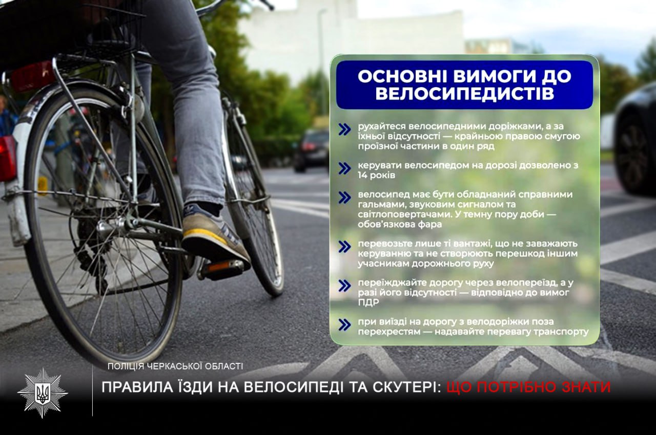 Поліція Черкащини нагадує водіям двоколісного транспорту про важливість дотримання Правил дорожнього руху
