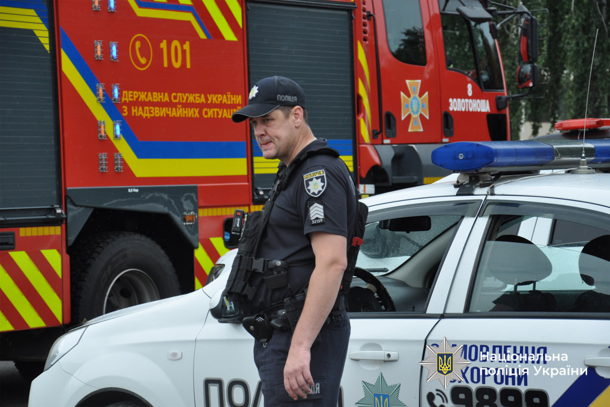 Наразі на місці працюють слідчо-оперативні групи, кінологи та вибухотехніки поліції. Поліцейські забезпечують охорону місця події та документують наслідки.