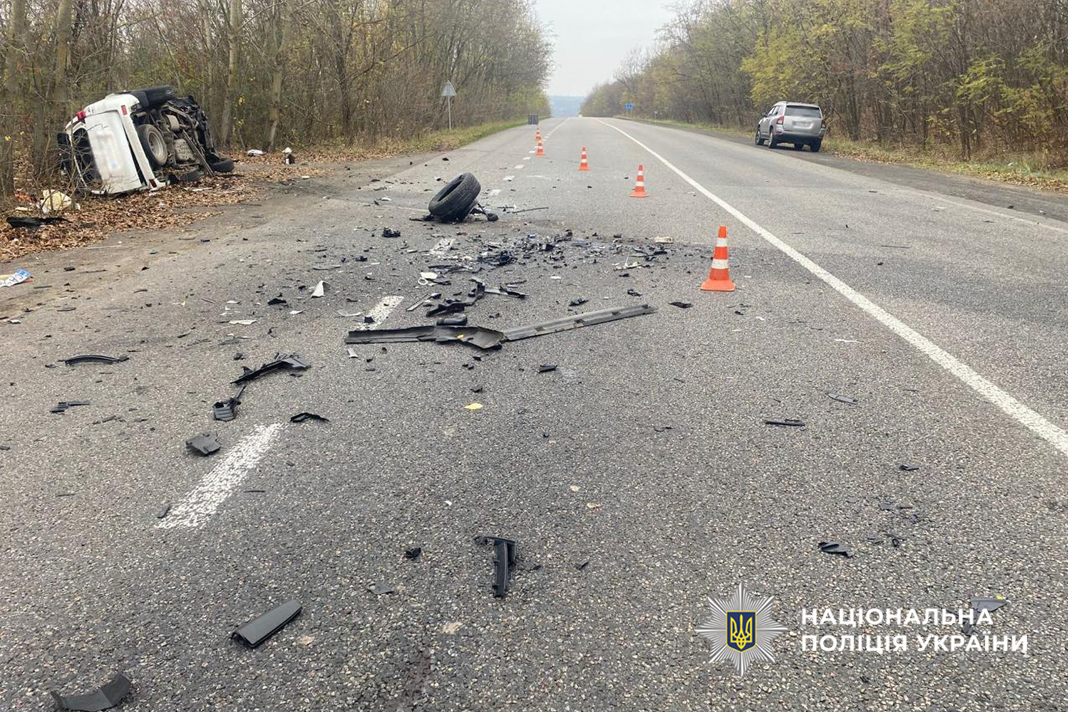 Як попередньо встановили поліцейські, 18-річний водій автомобіля «Volkswagen Passat» втратив контроль над керуванням транспортним засобом, виїхав на смугу зустрічного руху та зіткнувся з автомобілем «Toyota Prado», за кермом якого перебував 33-річний водій. Унаслідок удару позашляховик перекинувся на бік.