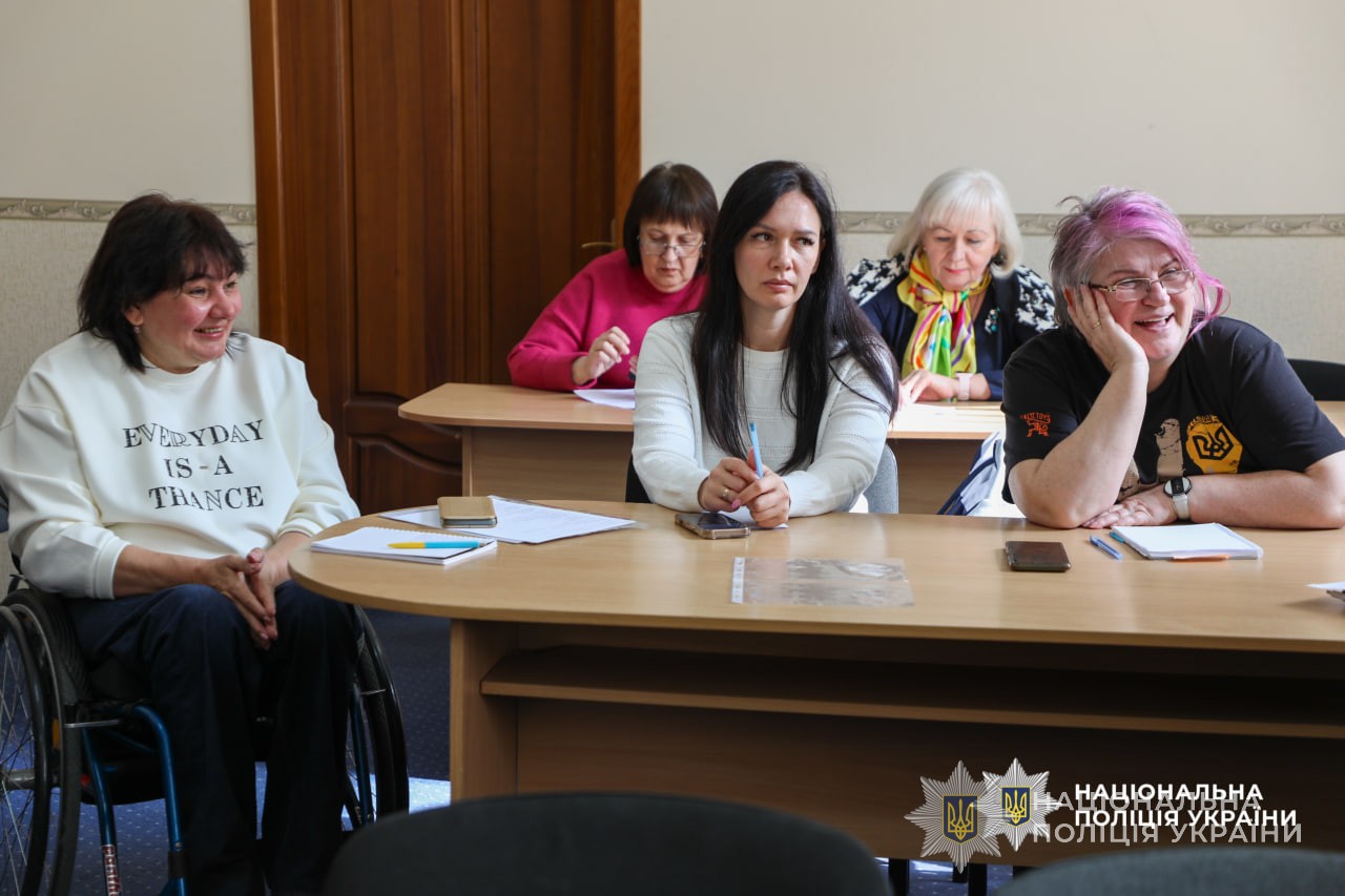 Правоохоронці долучилися до спільної наради, у якій взяли участь Уповноважений з прав осіб з інвалідністю, перший заступник голови ОДА та помічник начальника ГУНП в Черкаській області Ігор Головченко. Також були присутні представники управління патрульної поліції, заступниця начальника управління превентивної діяльності Тетяна Бондаренко, особи з інвалідністю та особи, що їх супроводжують.