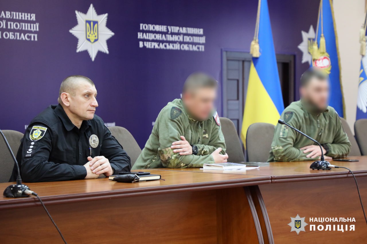 Зустріч відбулася в обласному Главку та Черкаському райуправлінні поліції. Представники детально розповіли про об’єднану штурмову бригаду Національної поліції України та як воюють поліцейські.