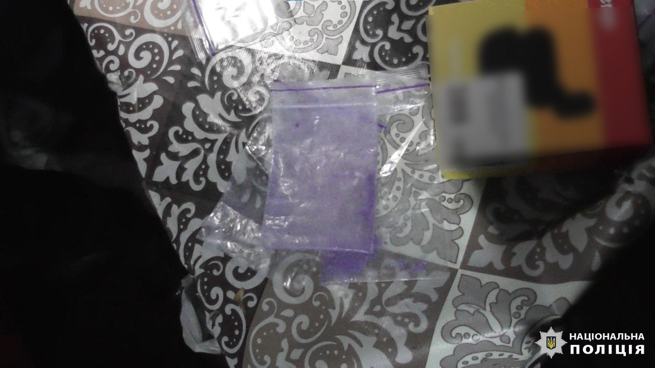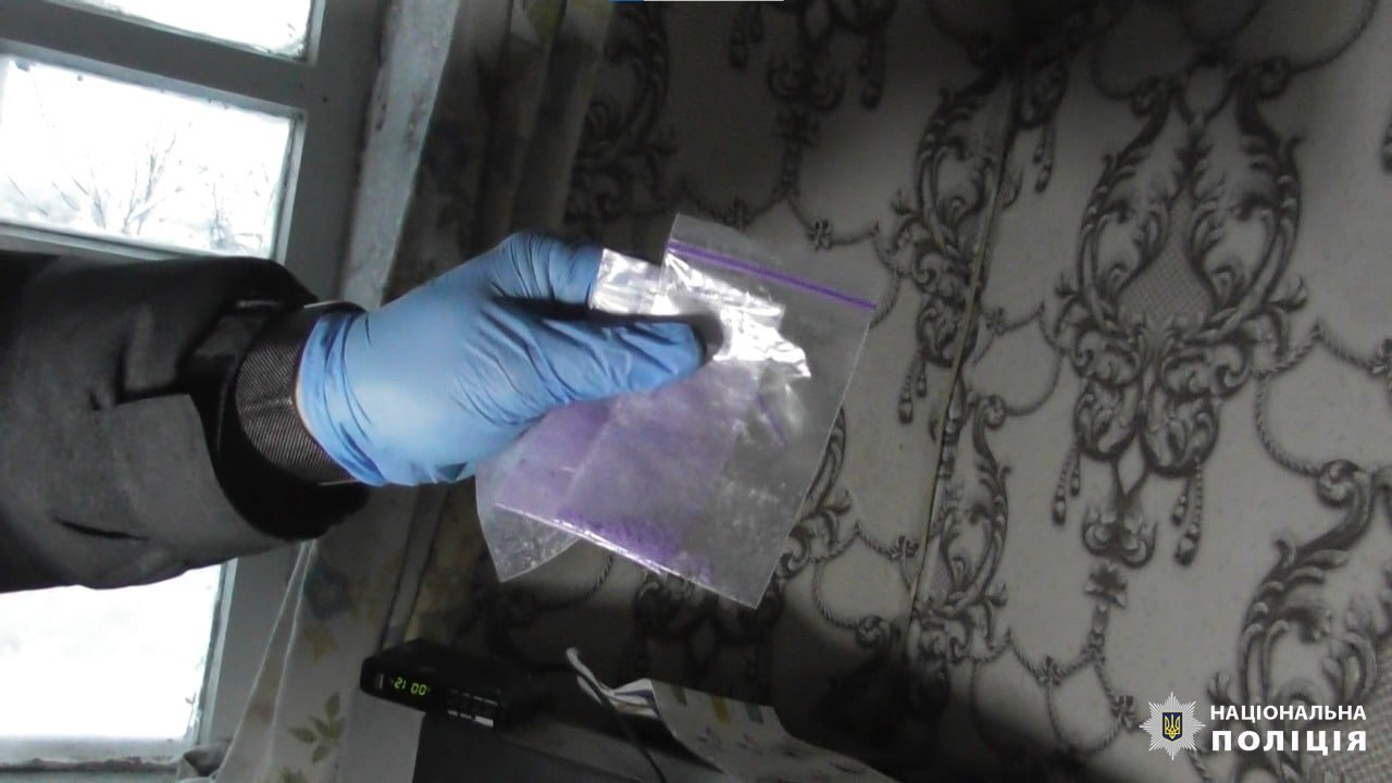 Під час обшуку були виявлені та вилучені поліетиленові пакети з кристалічною речовиною фіолетового кольору ймовірно «солі». Крім того, чоловік розповів правоохоронцям, що вже встиг зробити близько семи “закладок” по місту про що свідчили скриншоти геолокацій у його мобільному телефоні.