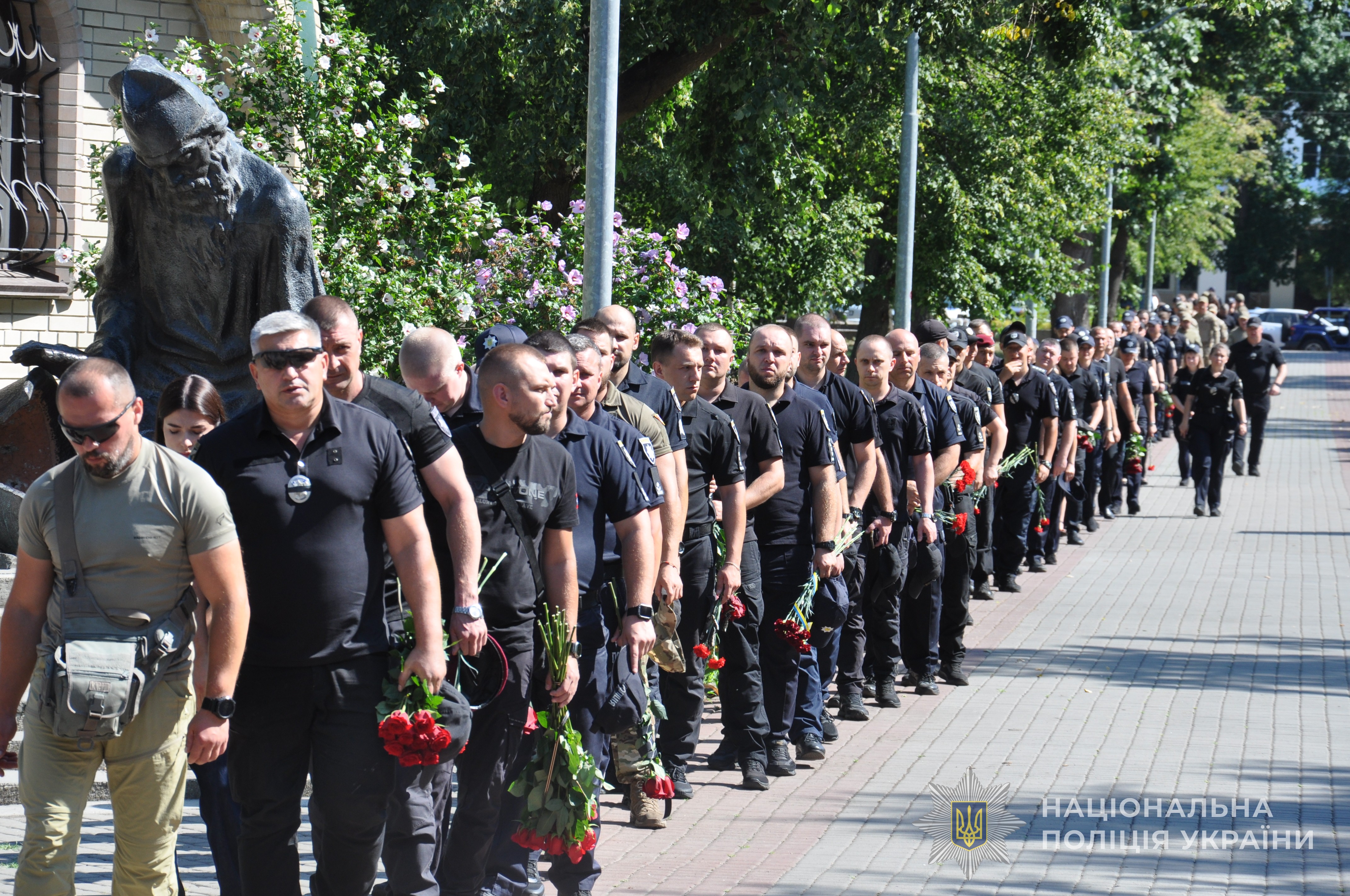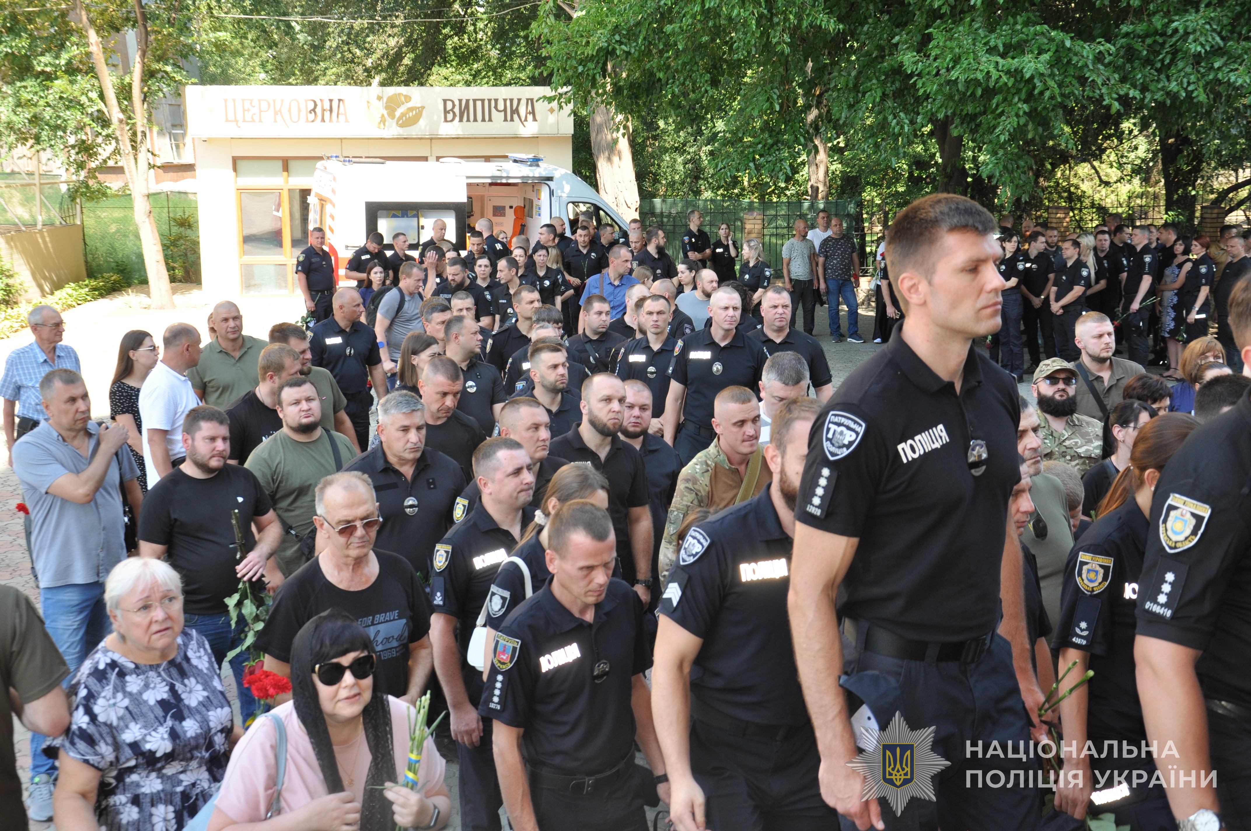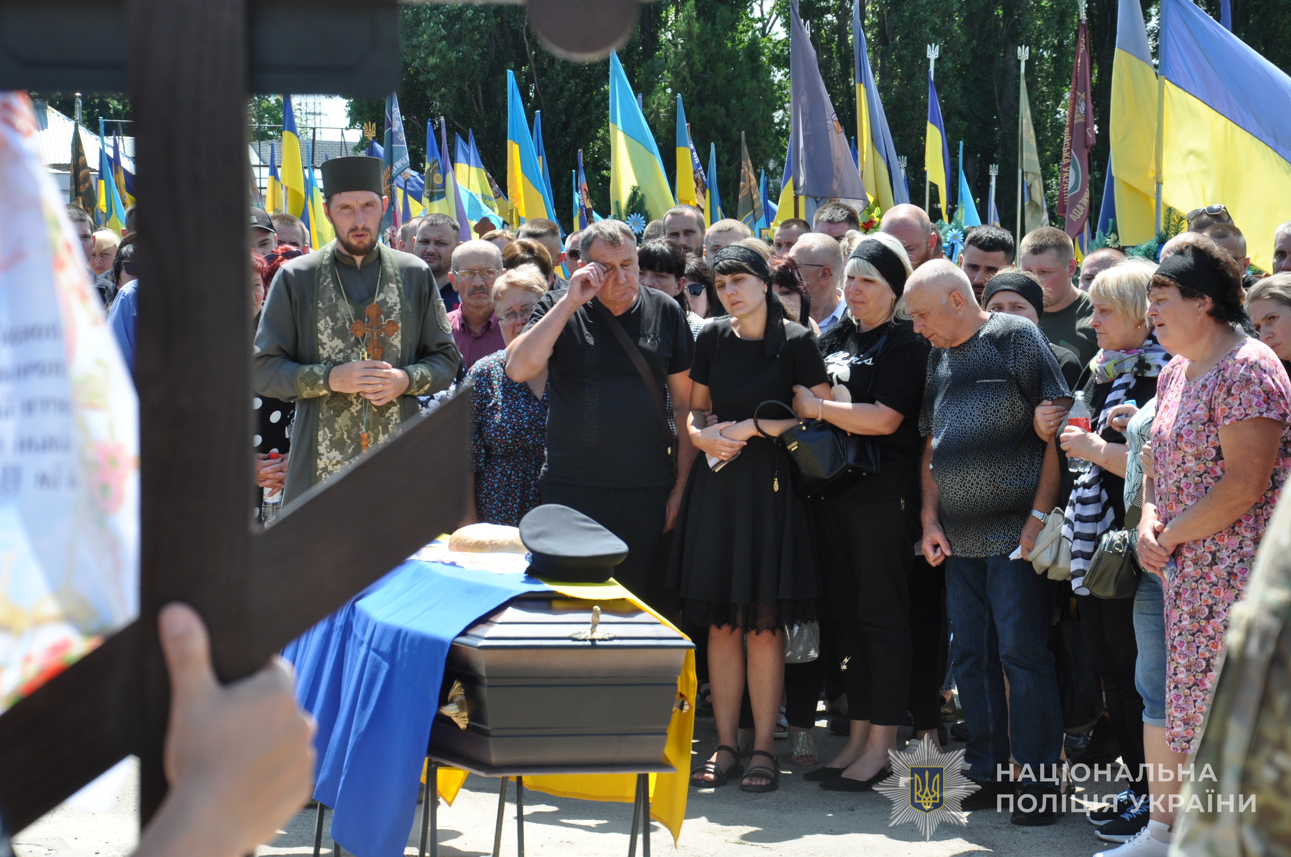 Сьогодні з поліцейським прощалися у Черкасах. Провести його в останню путь зібралися майже тисяча людей: односельці, жителі міста Черкаси, рідні, друзі та колеги.