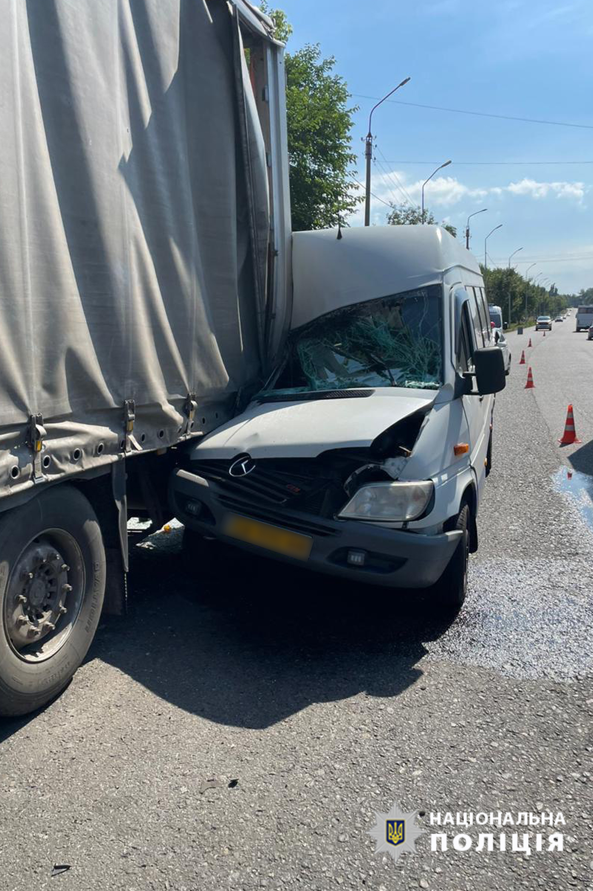 Дорожньо-транспортна пригода сталася близько 10:00 години на вулиці Незалежності в місті Сміла. Попередньо правоохоронці встановили, що 59-річний водій маршрутного таксі Mercedes-Benz Sprinter не впоравшись з керуванням в’їхав у припаркований вантажний автомобіль MAN TGX.