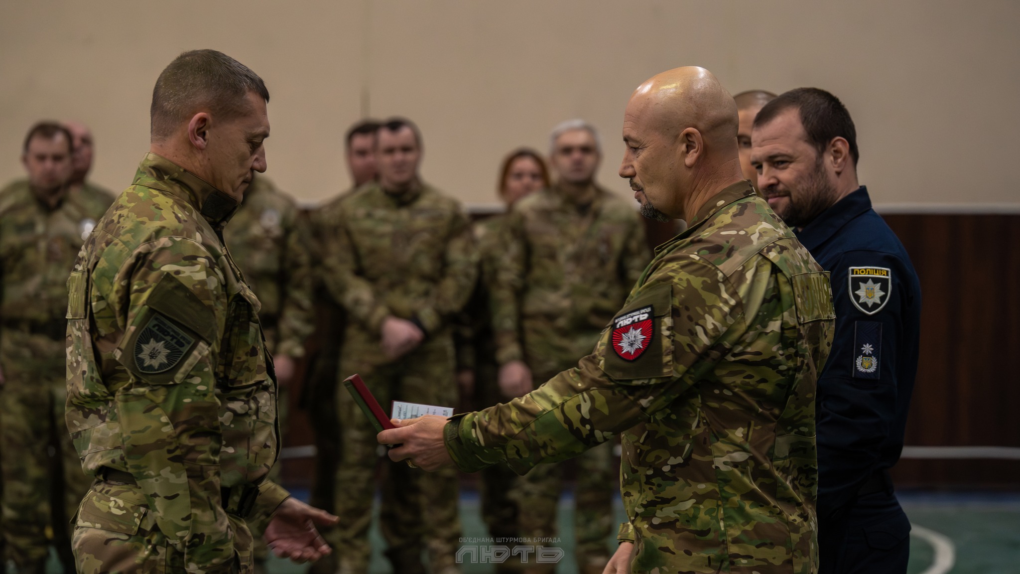 До річниці створення Об’єднаної штурмової бригади Національної поліції України «Лють» відбулося нагородження бійців, які мужньо виконували бойові завдання на фронті.