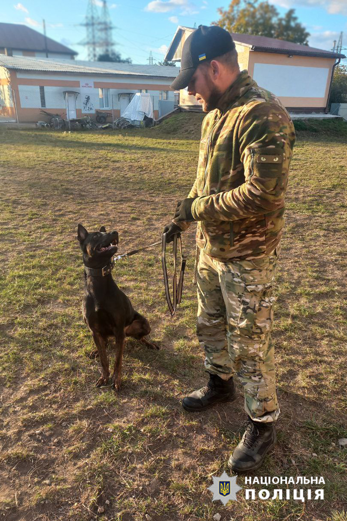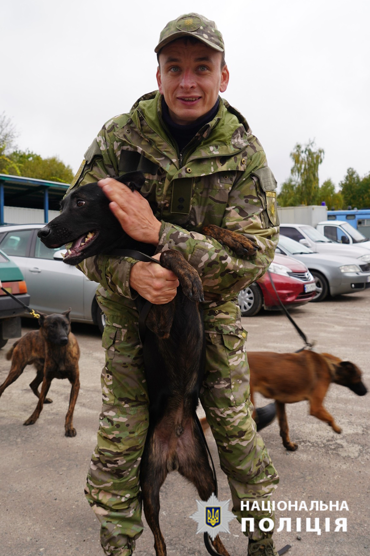 Цуценят черкаські кінологи отримали 16 жовтня у Львові. Собаки породи «малінуа» вже пройшли базовий курс дресування та готуються до спеціального навчання. Надалі чотирилапі напарники допомагатимуть поліціянтам у проведенні розмінувань, пошуку вибухових та наркотичних речовин, а також виконанні інших завдань на деокупованих територіях.