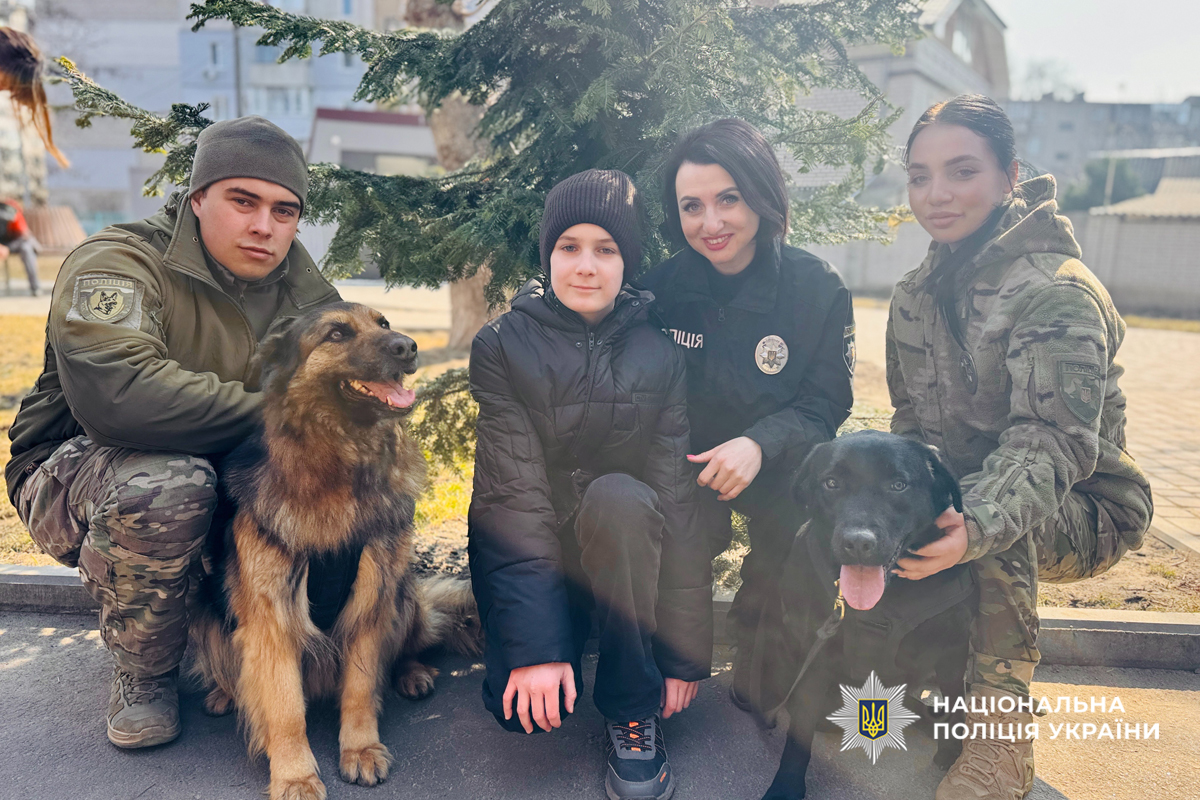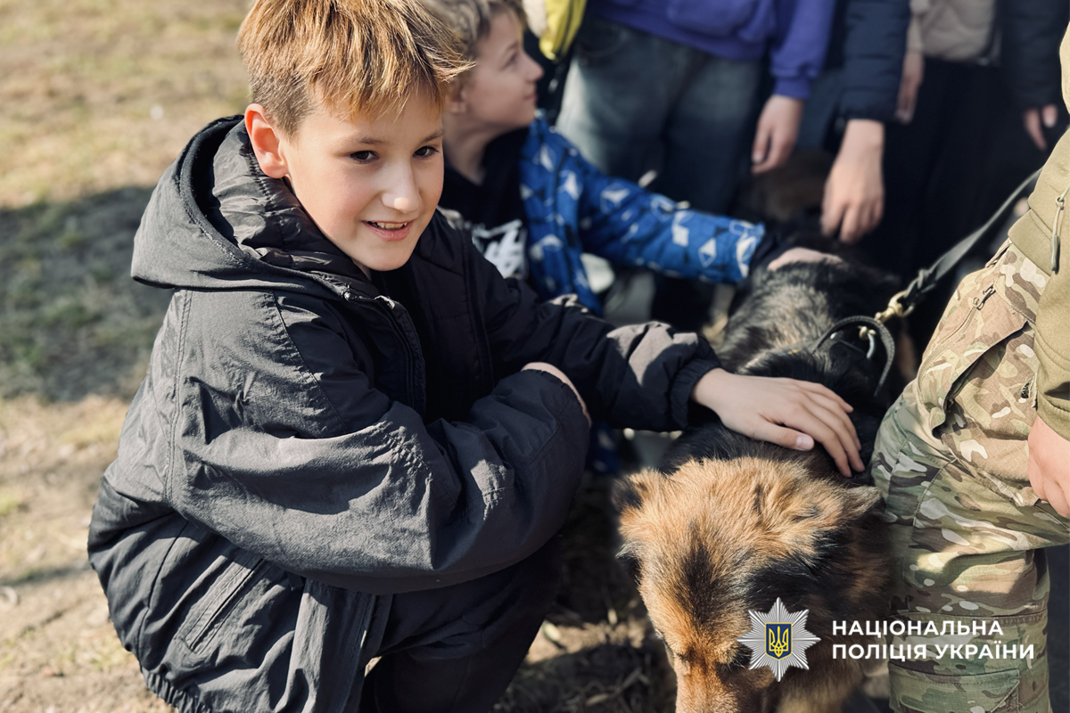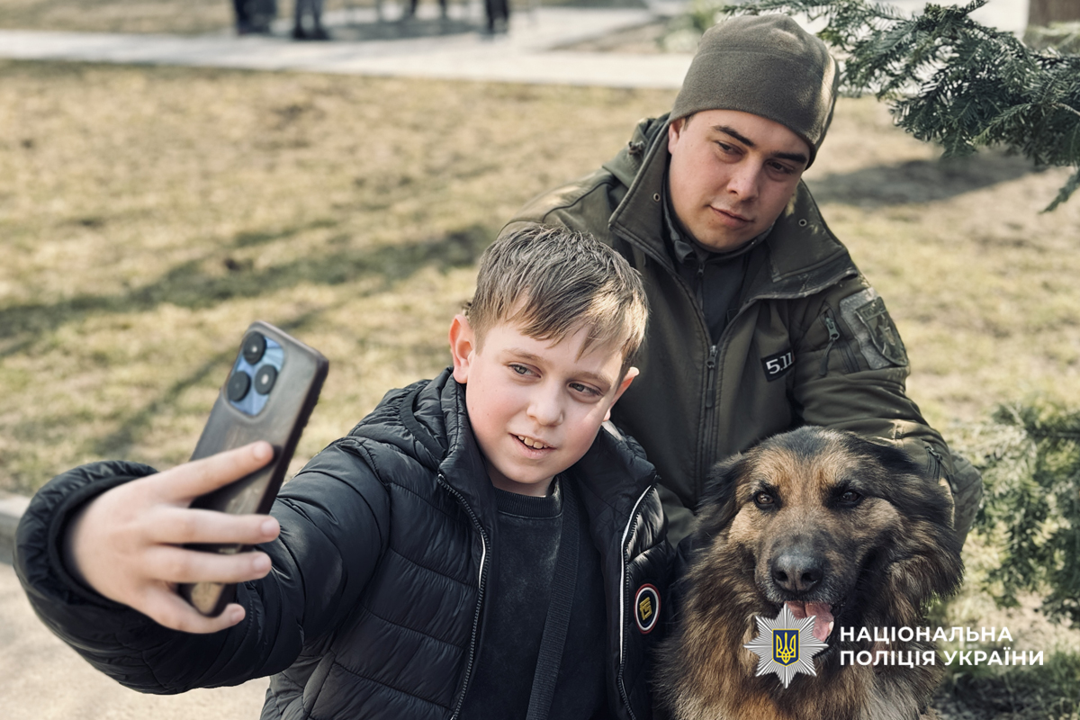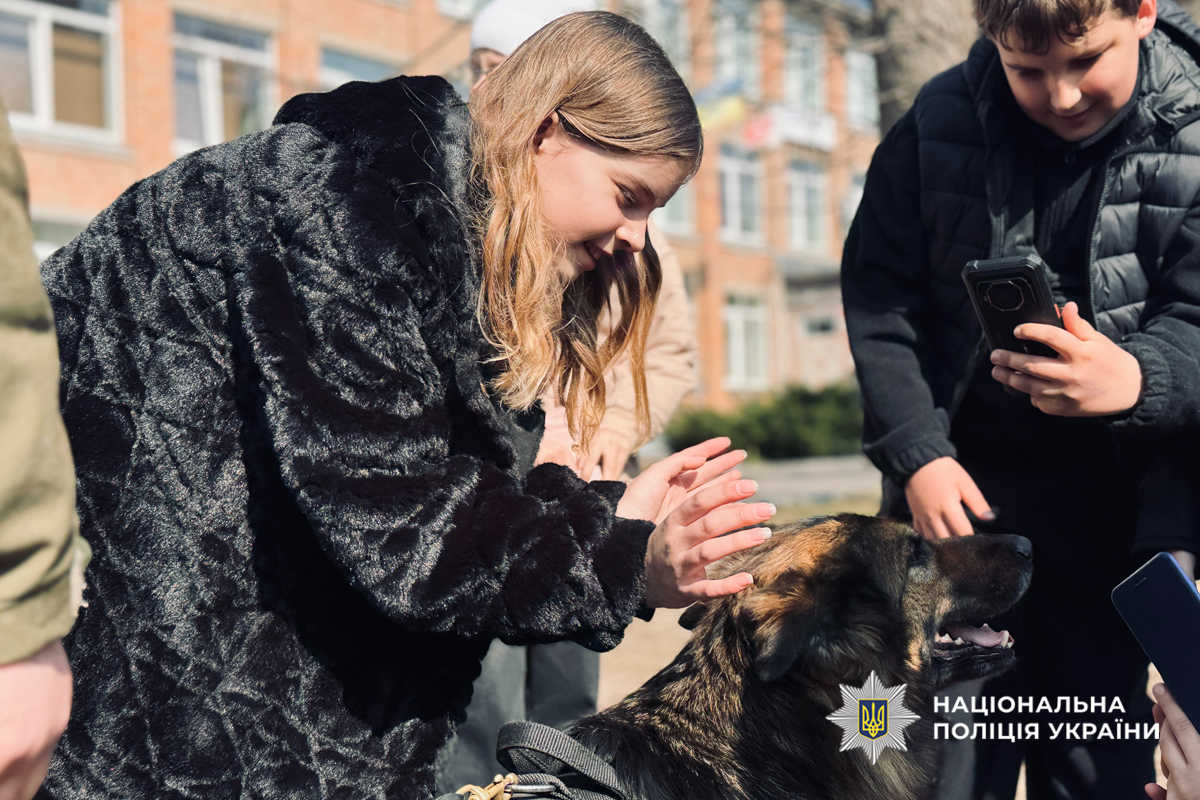 Особливу атмосферу тепла створили службові собаки — лабрадор Єва та німецька вівчарка Гера. Вони продемонстрували виконання команд, а також допомогли дітям розслабитися та відчути позитивні емоції. Учні мали змогу ближче познайомитися з чотирилапими помічниками поліцейських — погладити їх, погуляти разом та зробити фото на згадку.