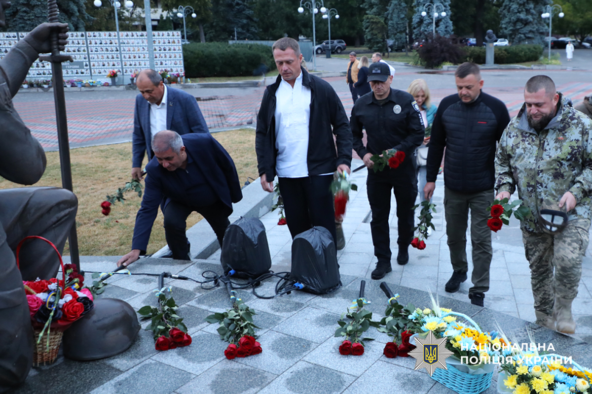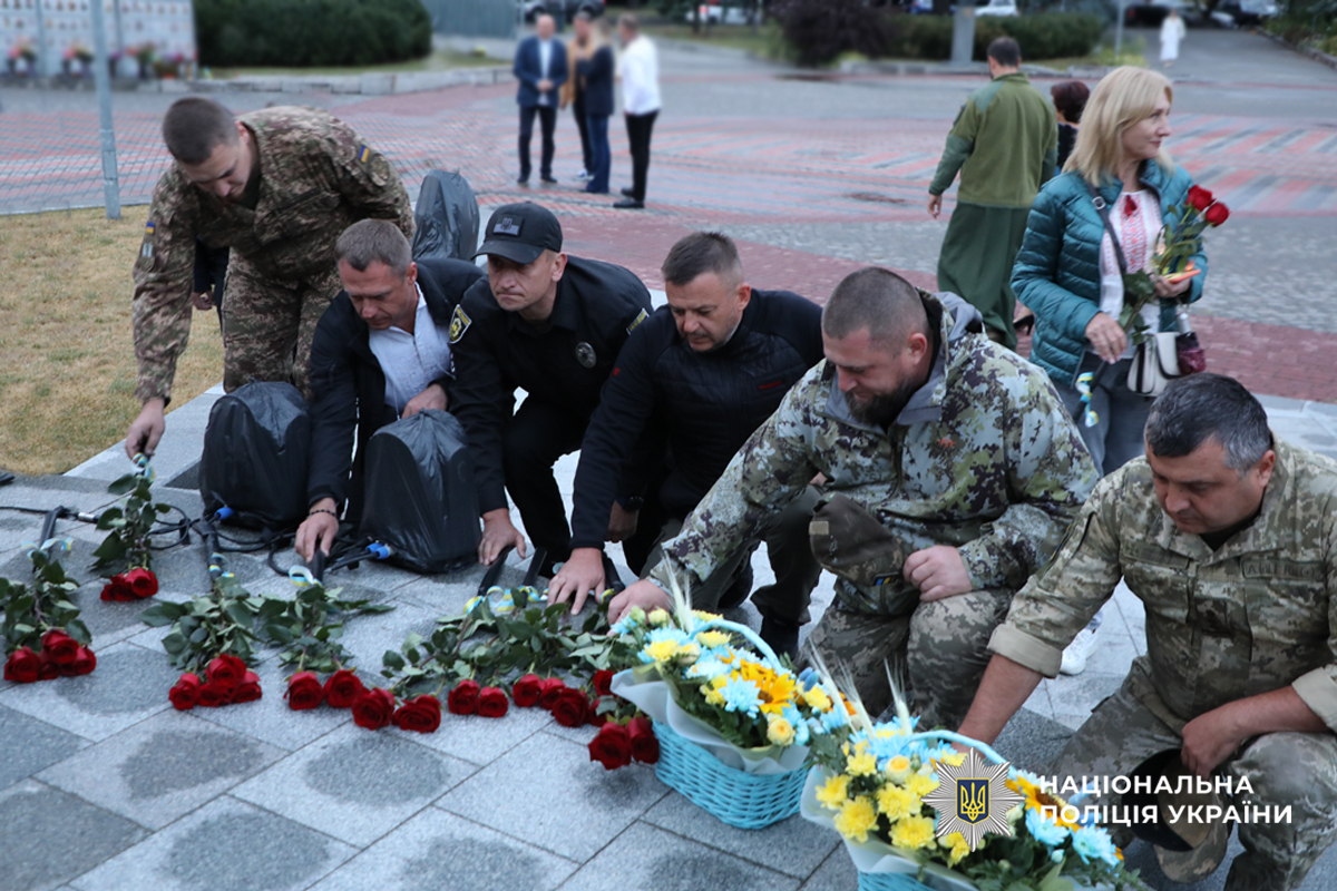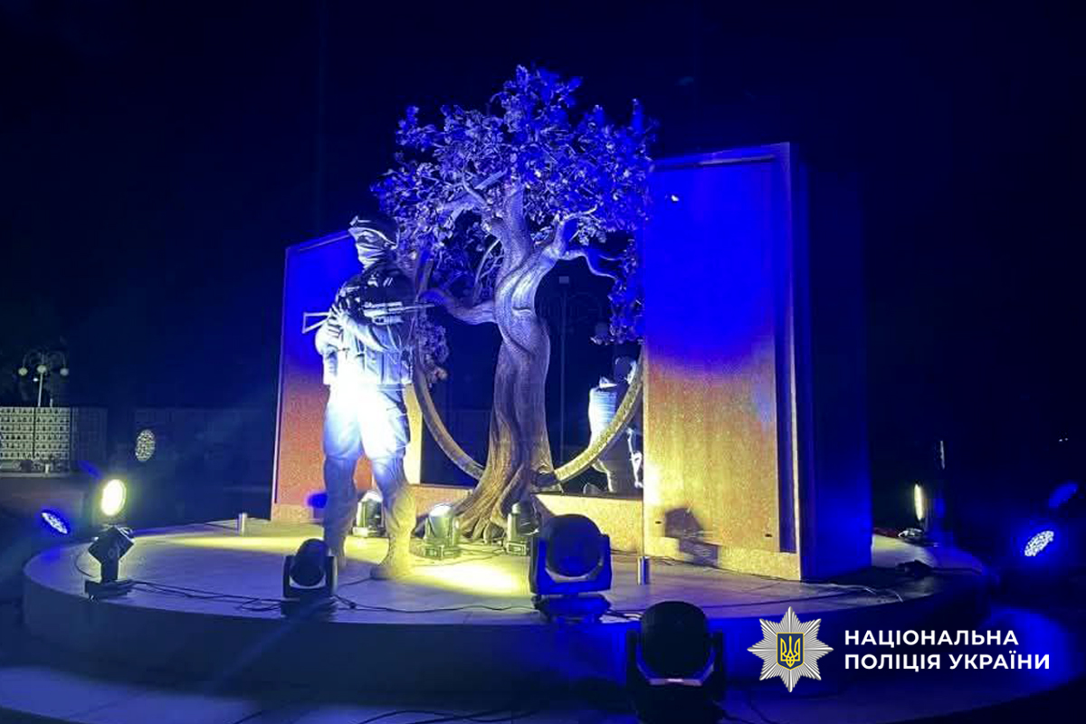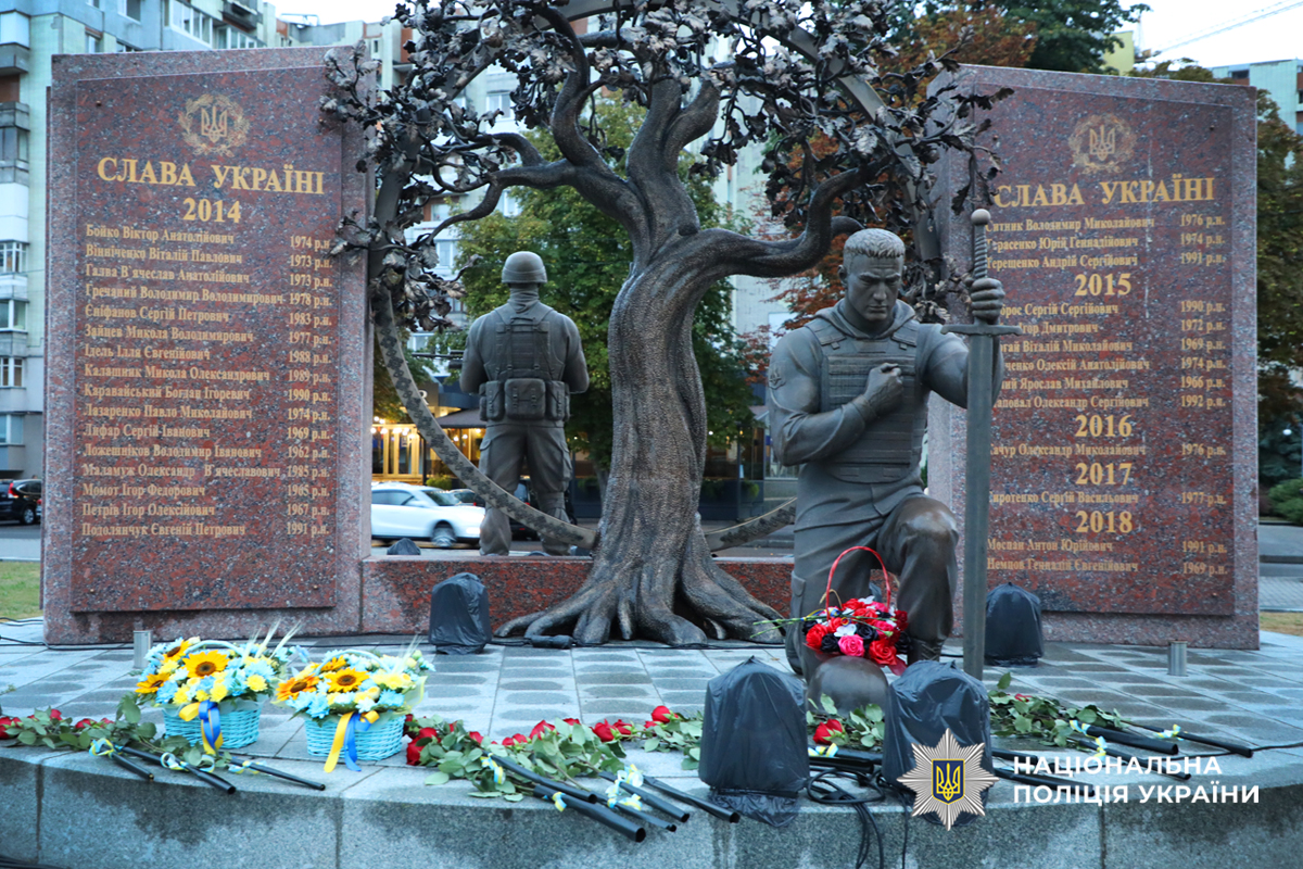 Сьогодні поліцейські, військові, представники силових структур, влади, волонтери та містяни, взяли участь в урочистих заходах, з нагоди Дня Незалежності кольорами національного прапора підсвітили знаки меморіалу на площі Слави.