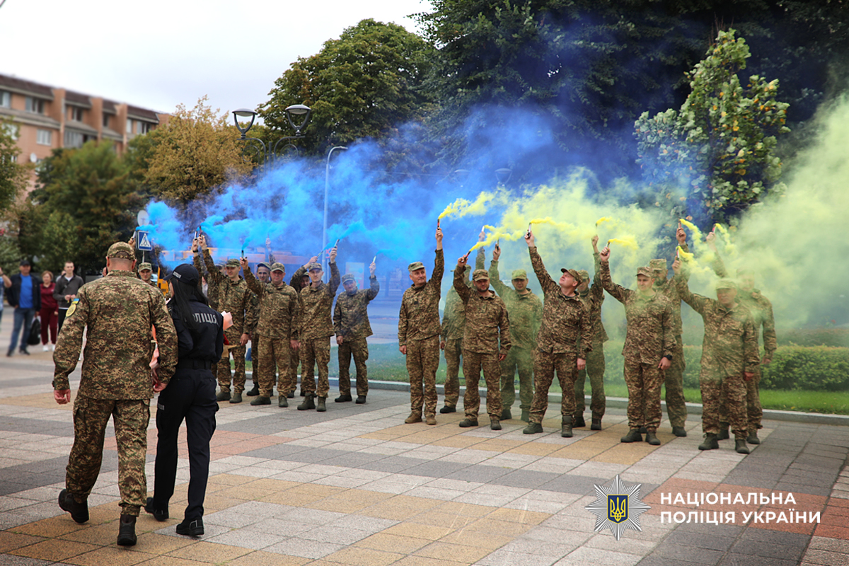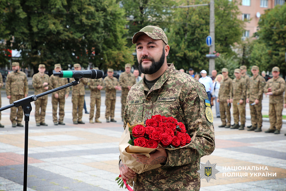 У Черкасах нацгвардієць освідчився поліцейській у День Прапора: вона відповіла «Так!»