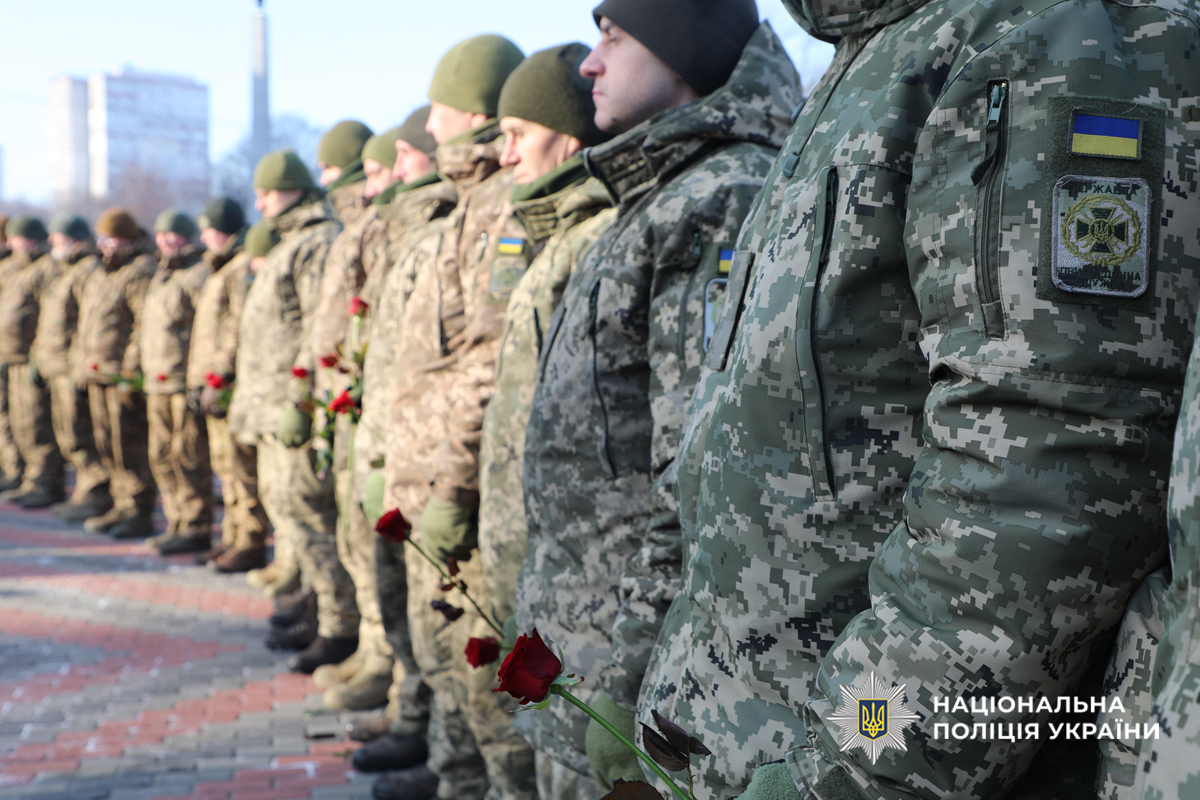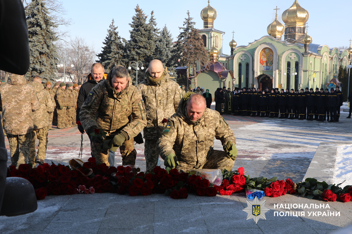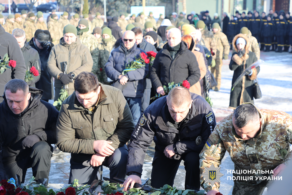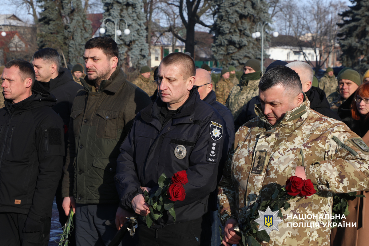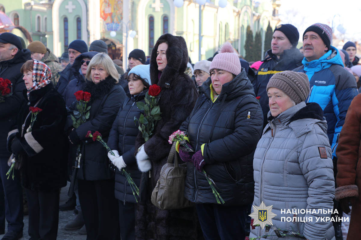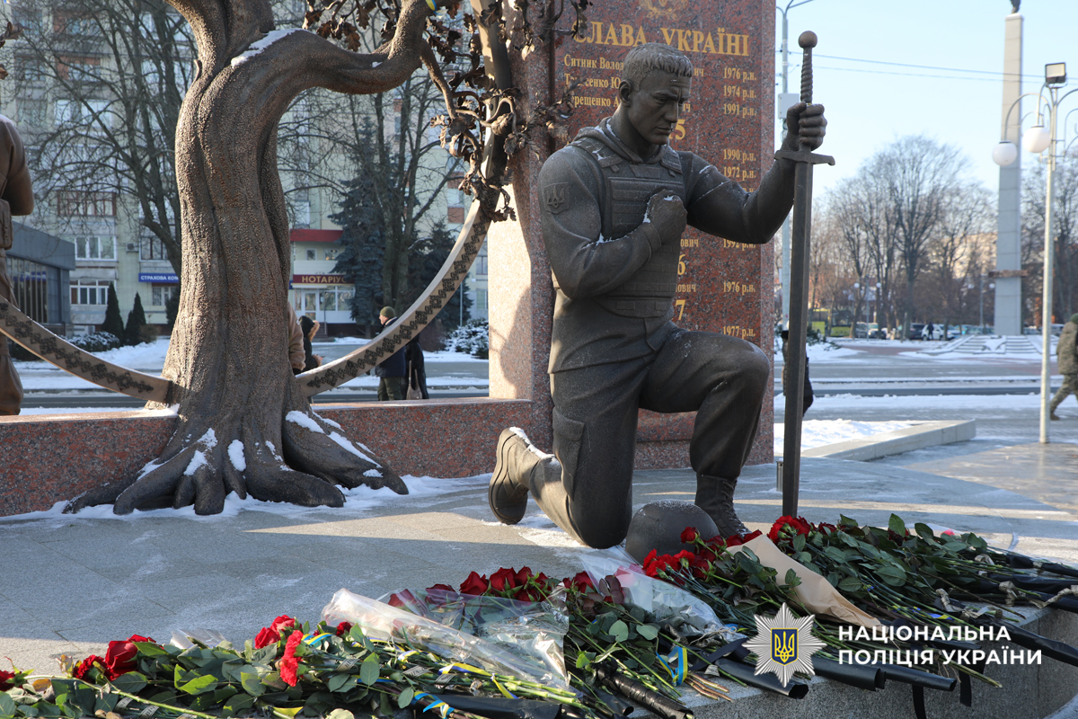 Церемонія відбулася біля Пам'ятного меморіалу «Борцям за волю України». Схилити голови в пошані перед мужністю воїнів та хвилині мовчання прийшли родини загиблих захисників, керівництво та особовий склад поліції, військовослужбовці, представники обласної та міської влади, а також містяни.