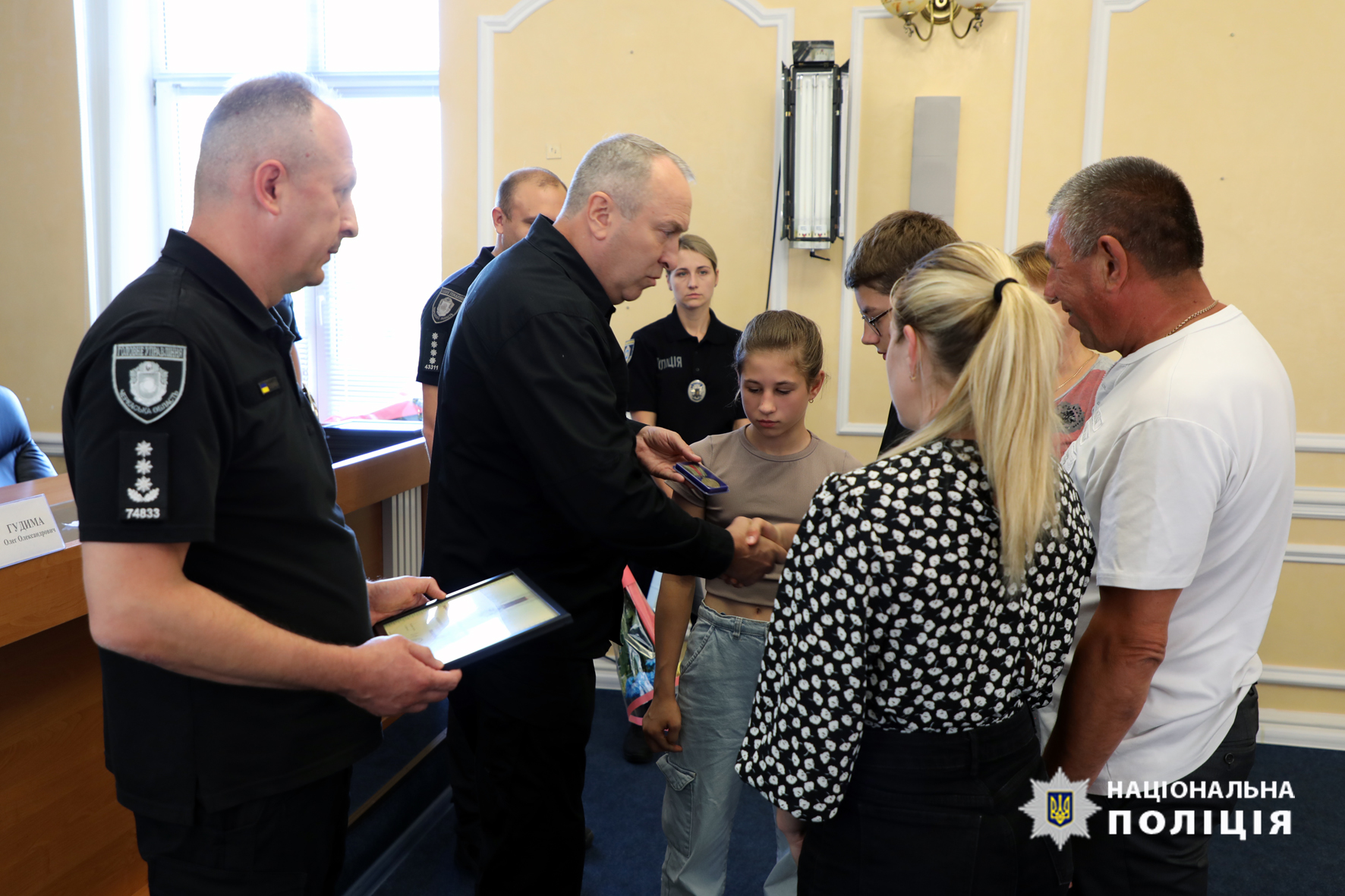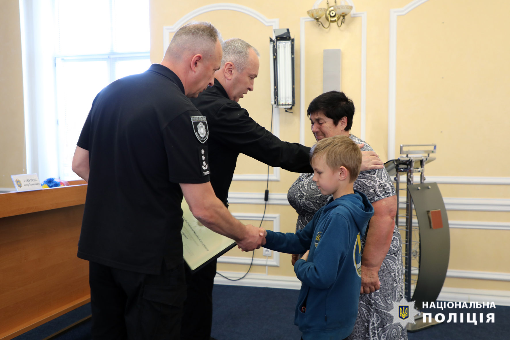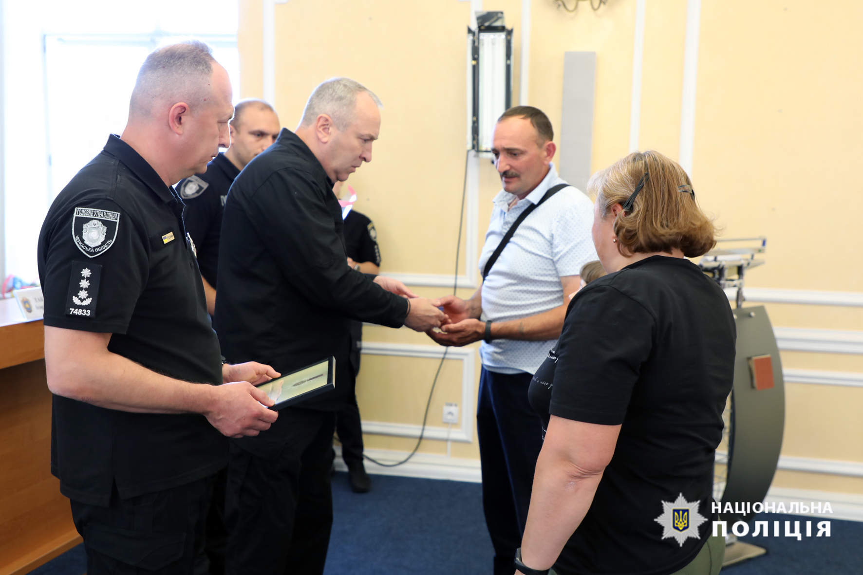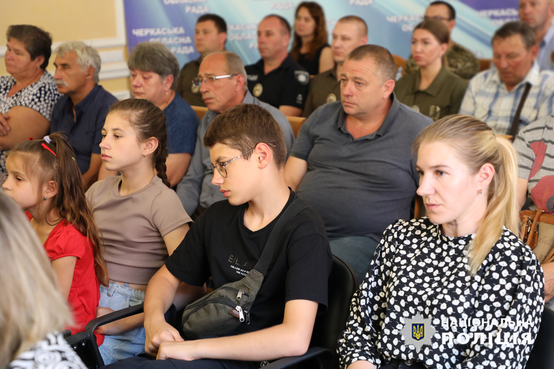 Відзнаки «За оборону України» (посмертно) вручили Голова Черкаської ОВА Ігор Табурець та начальник Головного управління Національної поліції в Черкаській області Олег Гудима та висловили слова вдячності й підтримки рідним полеглих поліцейських.