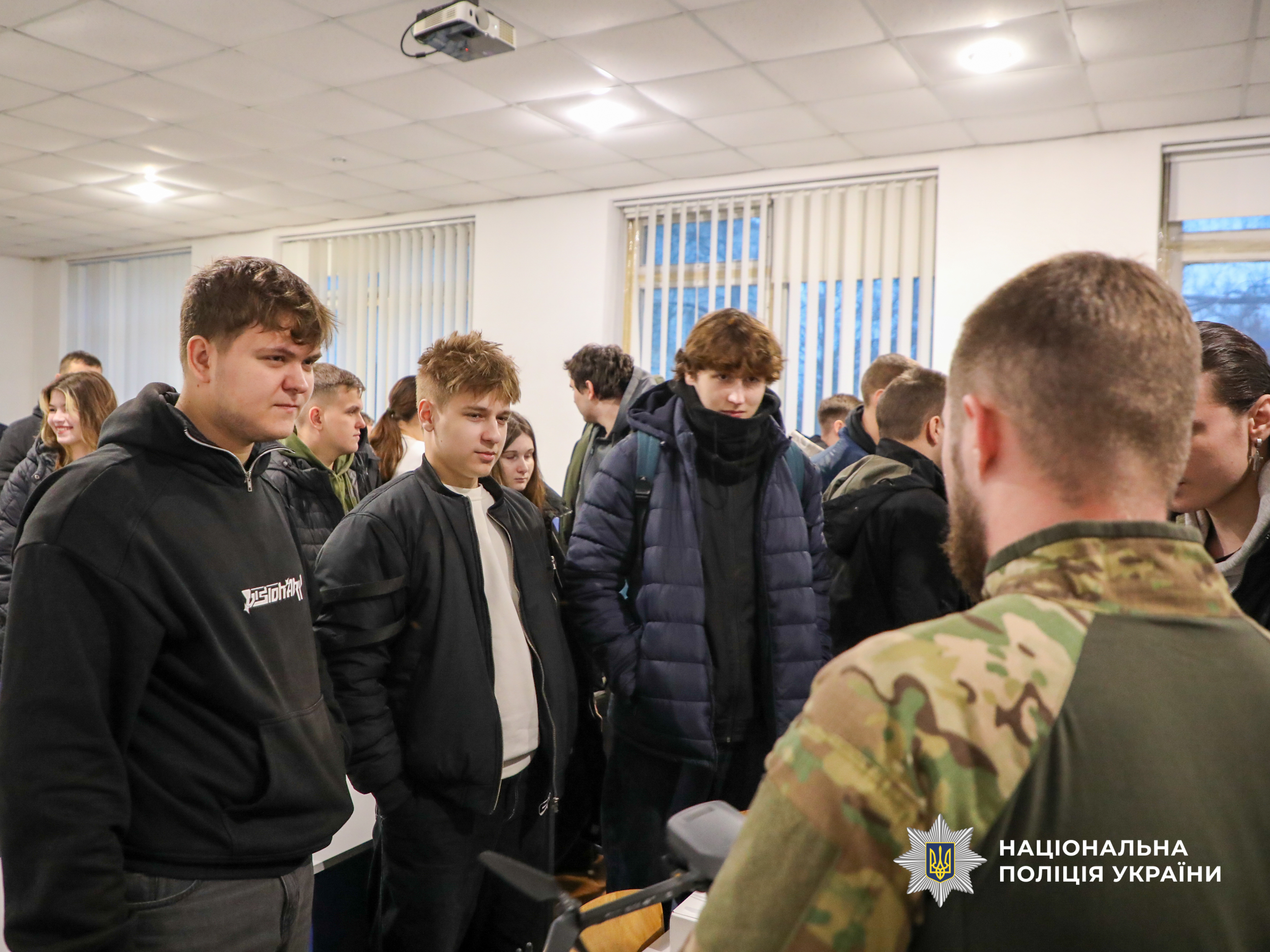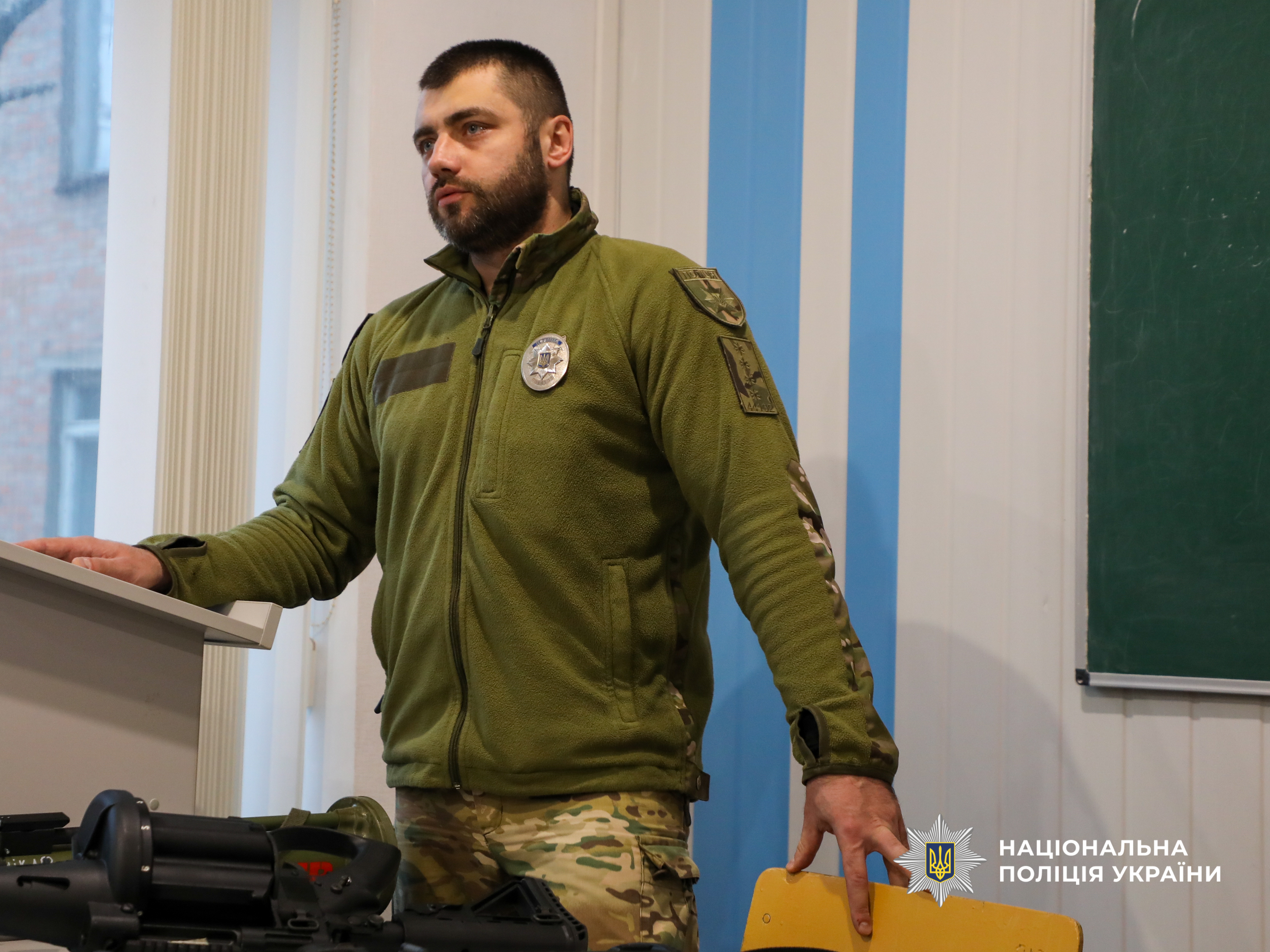 Спецпризначенці провели пізнавальну лекцію, під час якої розповіли про службу у спецпідрозділах, сучасне оснащення та роль новітніх технологій у роботі поліції.