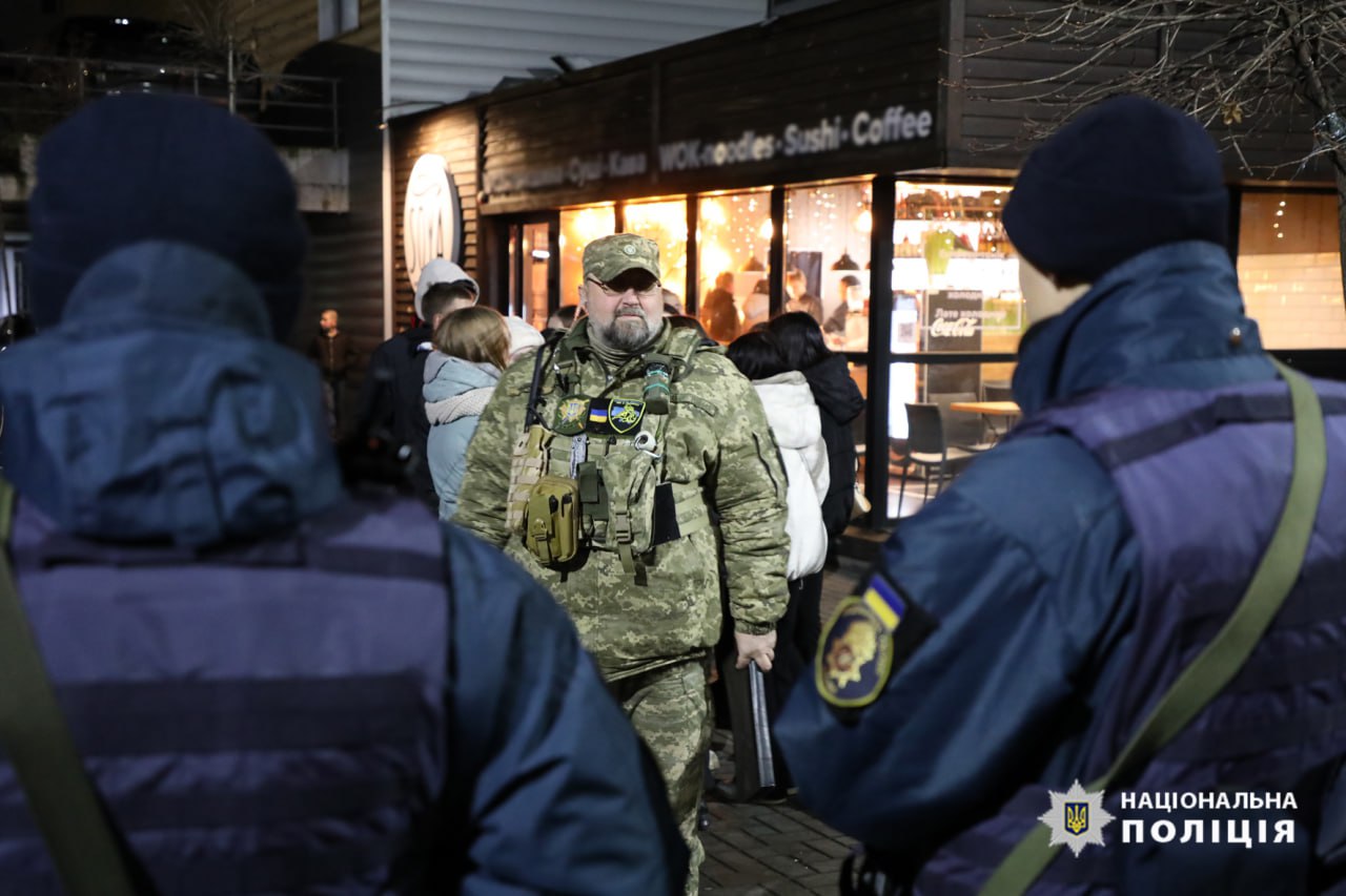 Поліція, військовослужбовці Національної гвардії та представники добровольчого формування під час вечірнього патрулювання у Черкасах перевірили ресторани, кафе, бари та порушників комендантської години у місті.