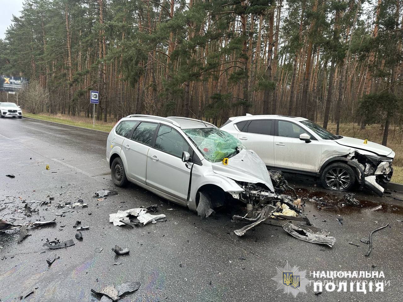 Попередньо: водій автомобіля Ford Focus виїхав на зустрічну смугу руху та скоїв зіткнення з автомобілем Range Rover. Від удару Ford Focus відкинуло в авто Mazda CX5.