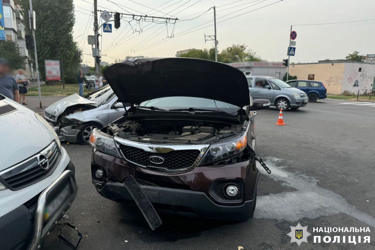 У Черкасах близько 14:30 години зіткнулися автомобілі "Kia Sorento", "Opel Astra" та "Opel Vivaro".
