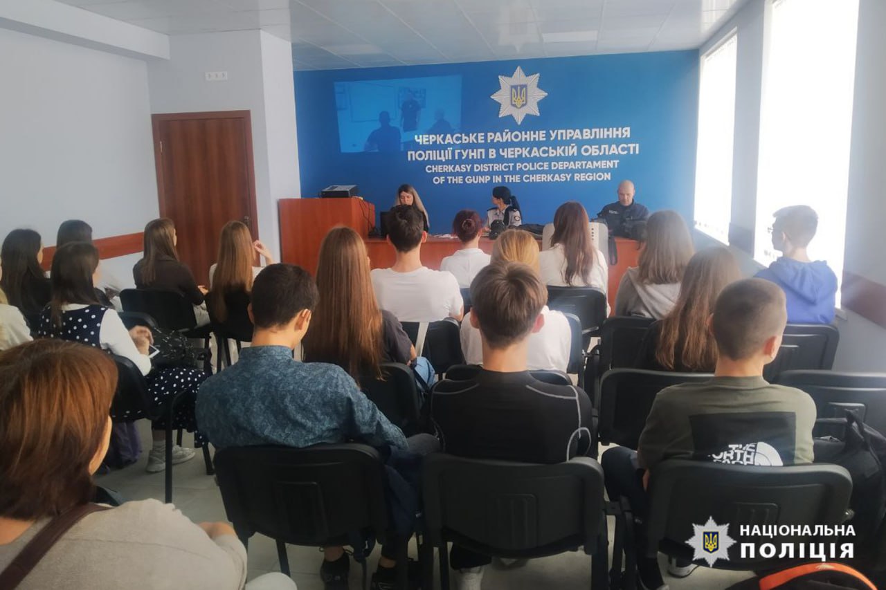 “День відкритих дверей” провели поліцейські кадрового підрозділу Черкаського районного управління поліції. Вони запросили в гості учнів старших класів Черкаської загальноосвітньої школи № 2. Старшокласникам розповіли про основні завдання, які виконують поліціянти, які служби входять до складу поліції та які функції виконують.
