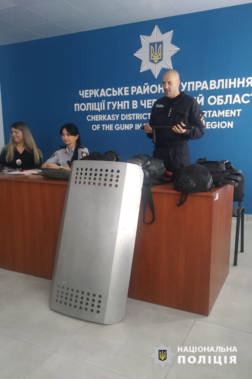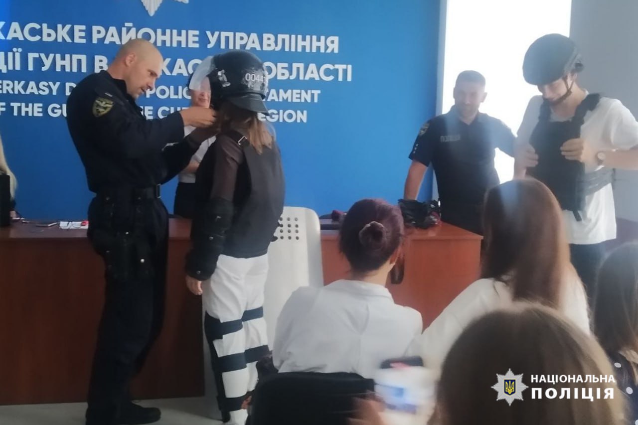 На всі запитання одинадцятикласників щодо вступу до поліції працівники кадрового підрозділу дали вичерпні відповіді. А також, гості мали можливість приміряти засоби індивідуального захисту черкаських правоохоронців.