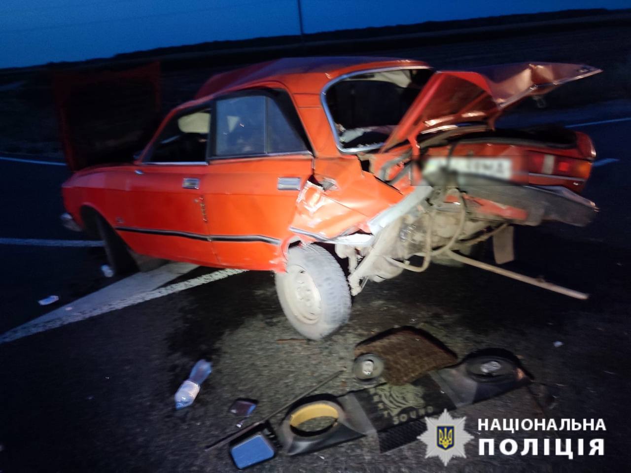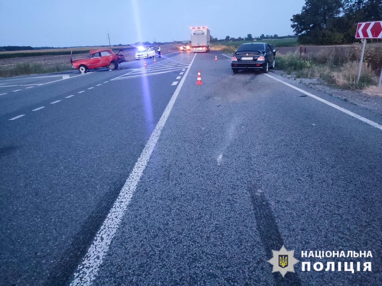Слідчі попередньо встановили, що 38-річний водій автомобіля Mitsubishi Lancer скоїв зіткнення з авто АЗЛК-2140, що рухалося в попутному напрямку. Від удару останній транспортний засіб перекинувся. За його кермом перебувала 36-річна жінка, яка отримала травми та була госпіталізована до лікарні.