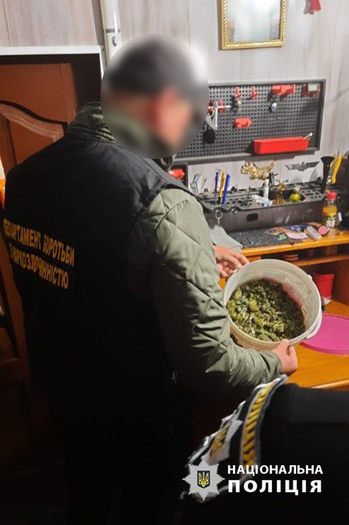 Під час санкціонованого обшуку у домогосподарстві підозрюваного правоохоронці виявили та вилучили дозрілі рослини конопель та близько кілограма сухих суцвіть. Слідчі відкрили кримінальне провадження.