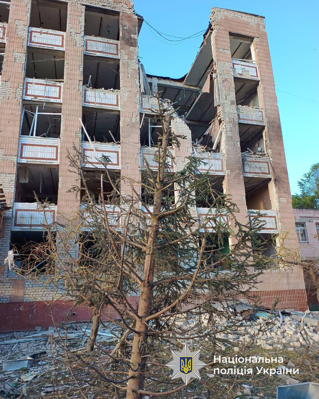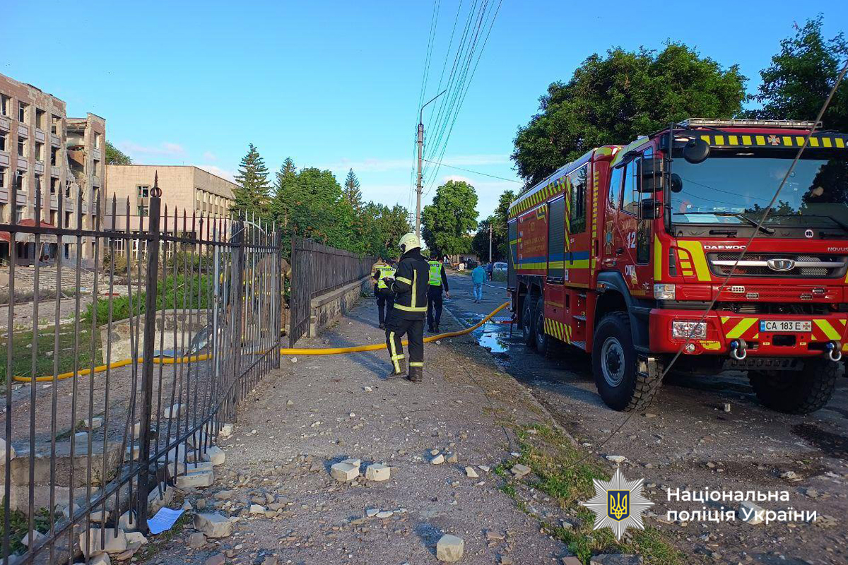 За попередніми даними, в межах міста Сміла зафіксовано падіння трьох ракет та восьми БпЛА. російський ворог прицільно бив по цивільній інфраструктурі. В результаті обстрілу пошкоджено три дев'ятиповерхівки, приватні будинки, транспортні засоби, щонайменше чотири заклади освіти та психлікарня. росіяни практично вщент зруйнували навчальний корпус коледжу Національного університету харчових технологій, де напередодні відбувся випуск молодших бакалаврів.