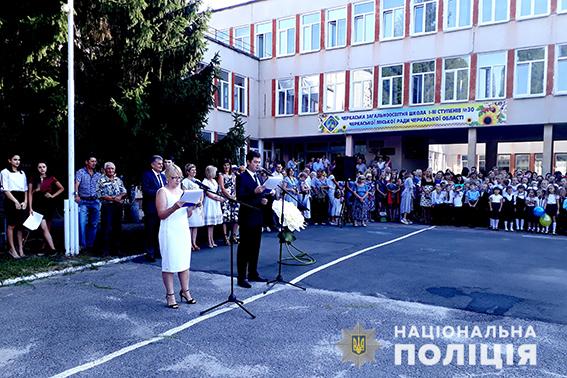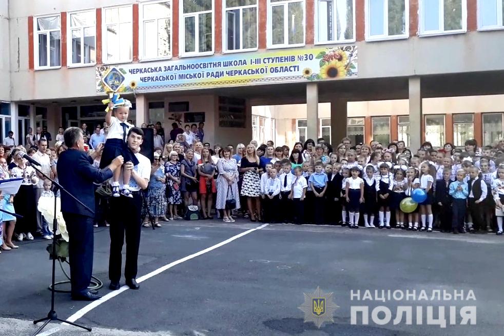 Вся Україна святкує День Знань та початок шкільних занять. На подвір’ях навчальних закладів лунає весела музика, шкільні пісні, вітальні промови вчителів та перший символічний дзвоник. Публічний порядок і безпеку громадян під час свята забезпечили 412 поліцейських Черкащини.