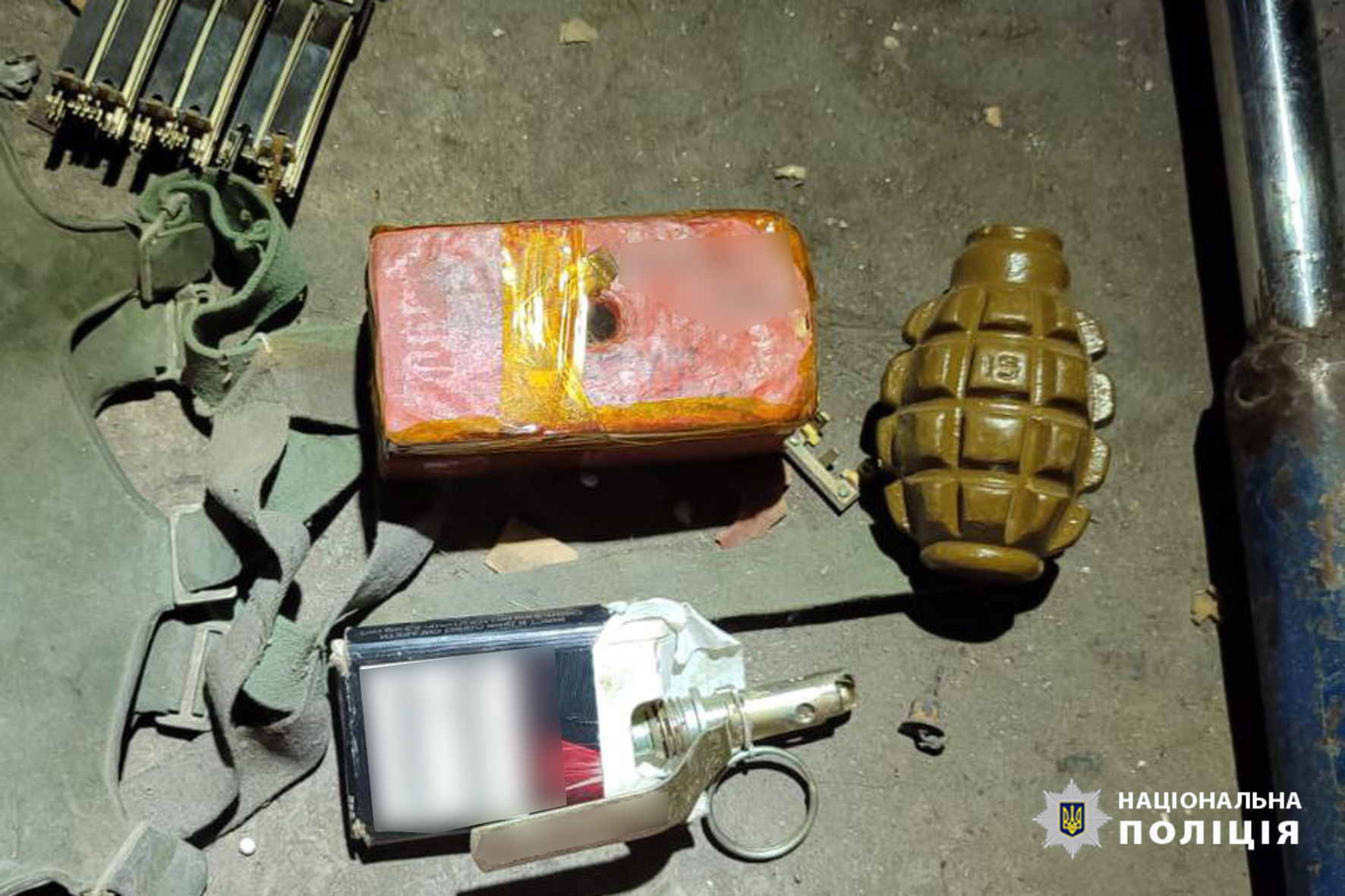 Під час обшуку у господарській споруді було виявлено більш як 200 набоїв, пістолет з явними ознаками конструктивних змін без маркування та боєприпаси. Наявність серед них: тротилова шашка, запали до гранат та корпус гранати Ф1.