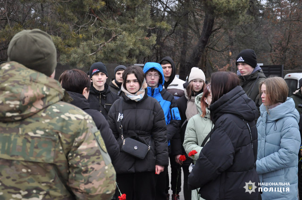 До кінологічного центру ГУНП в Черкаській області завітали учні та викладачі Хацьківського ліцею. Діти прийшли вшанувати пам'ять свого односельця та більше дізнатися про його службу.