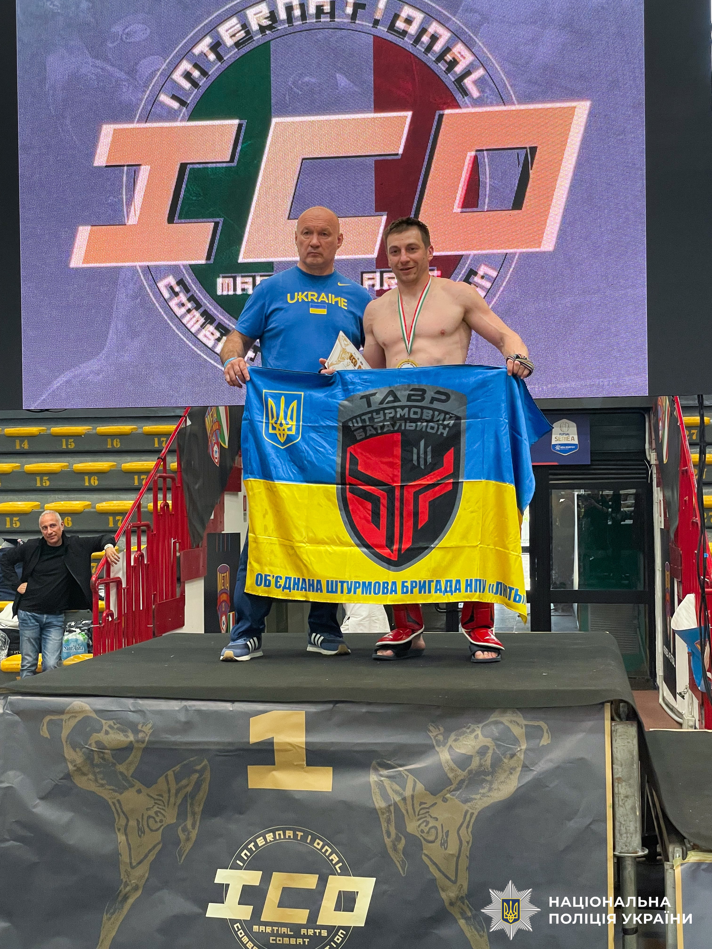 Триденний турнір «ICO European Championship 2025» відбувся в італійському місті Катанія. Він зібрав 657 спортсменів із 18 країн світу, які боролися за звання кращого бійця Європи в тайському боксі, кікбоксингу, боксі, боротьбі та інших видах єдиноборств. Українська збірна стала абсолютним переможцем Чемпіонату Європи-2025 з бойових мистецтв комбат-самозахисту ІСО, виборовши 131 золоту нагороду. Після приїзду українських учасників Голова Нацполіції Іван Вигівський відзначив поліцейських нагородами та цінними подарунками.