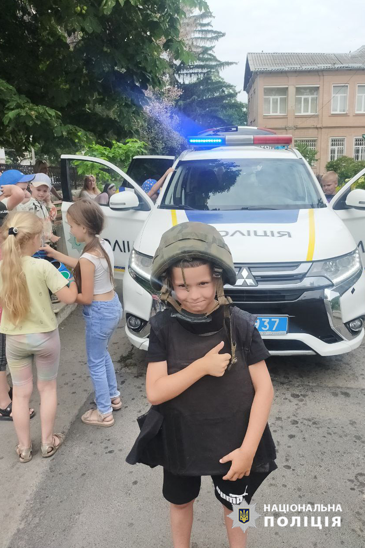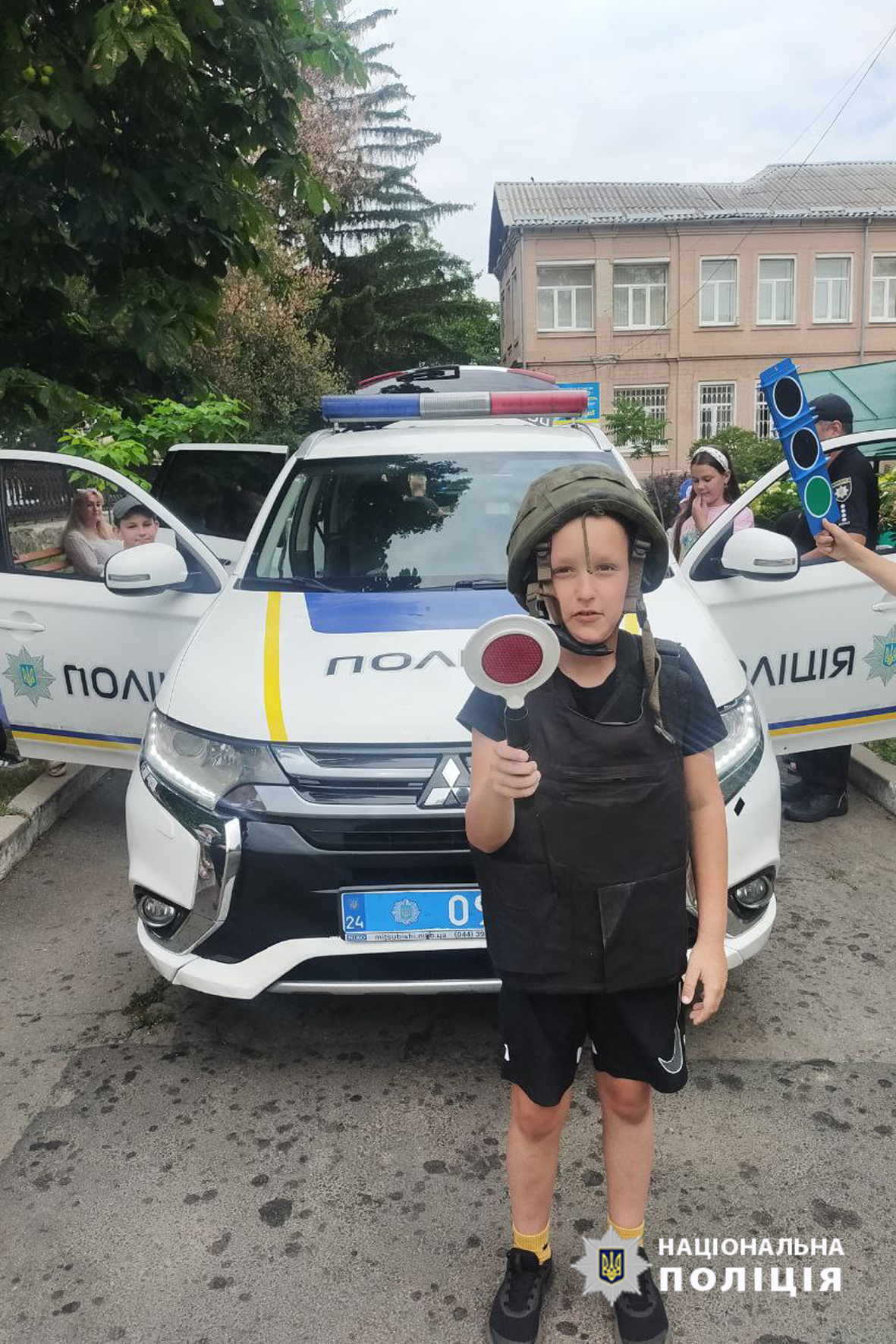 Вихованці ясла-садку приміряли елементи поліцейського екіпірування, посиділи в службовому автомобілі та почули як працює гучномовець.