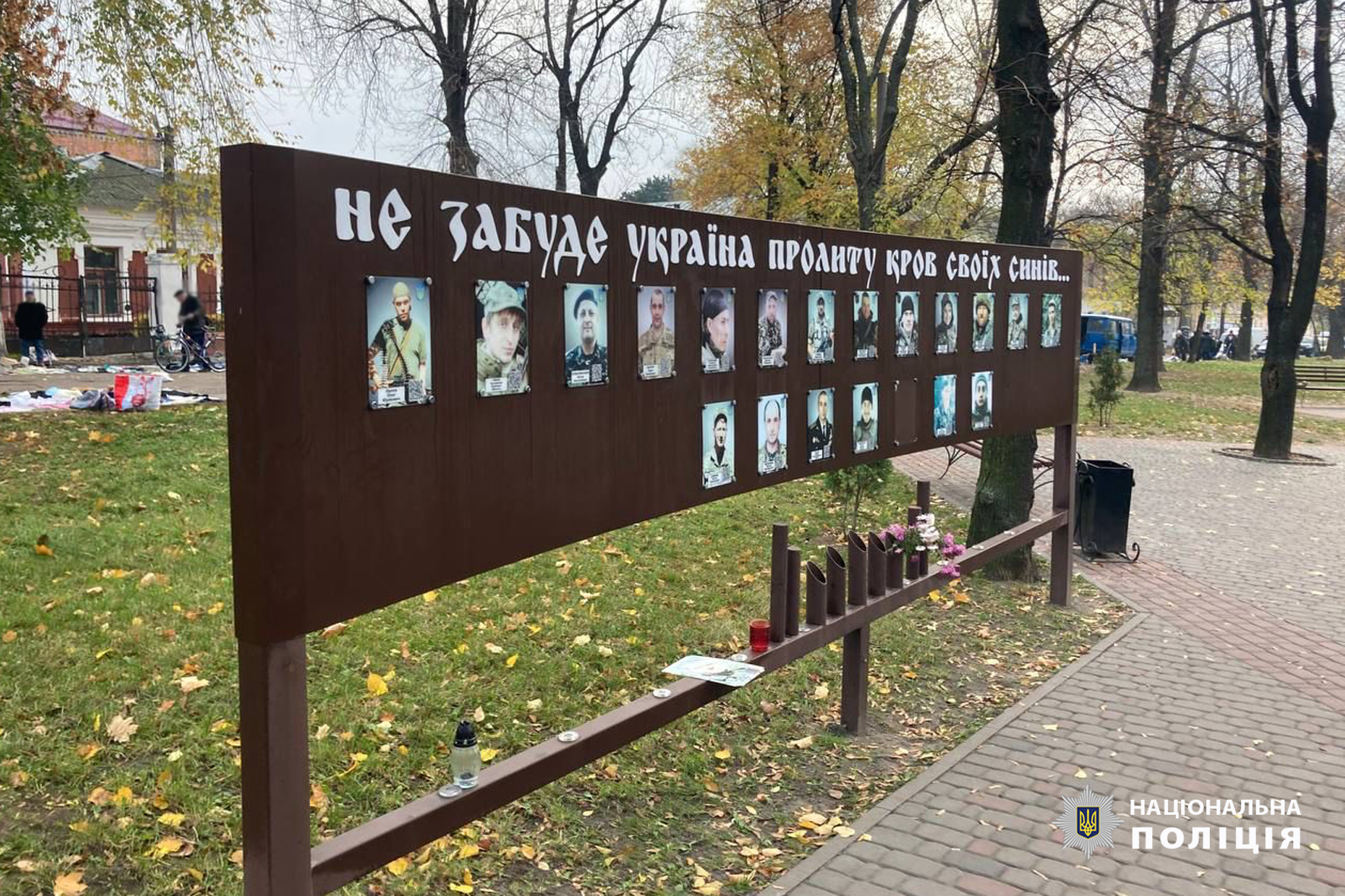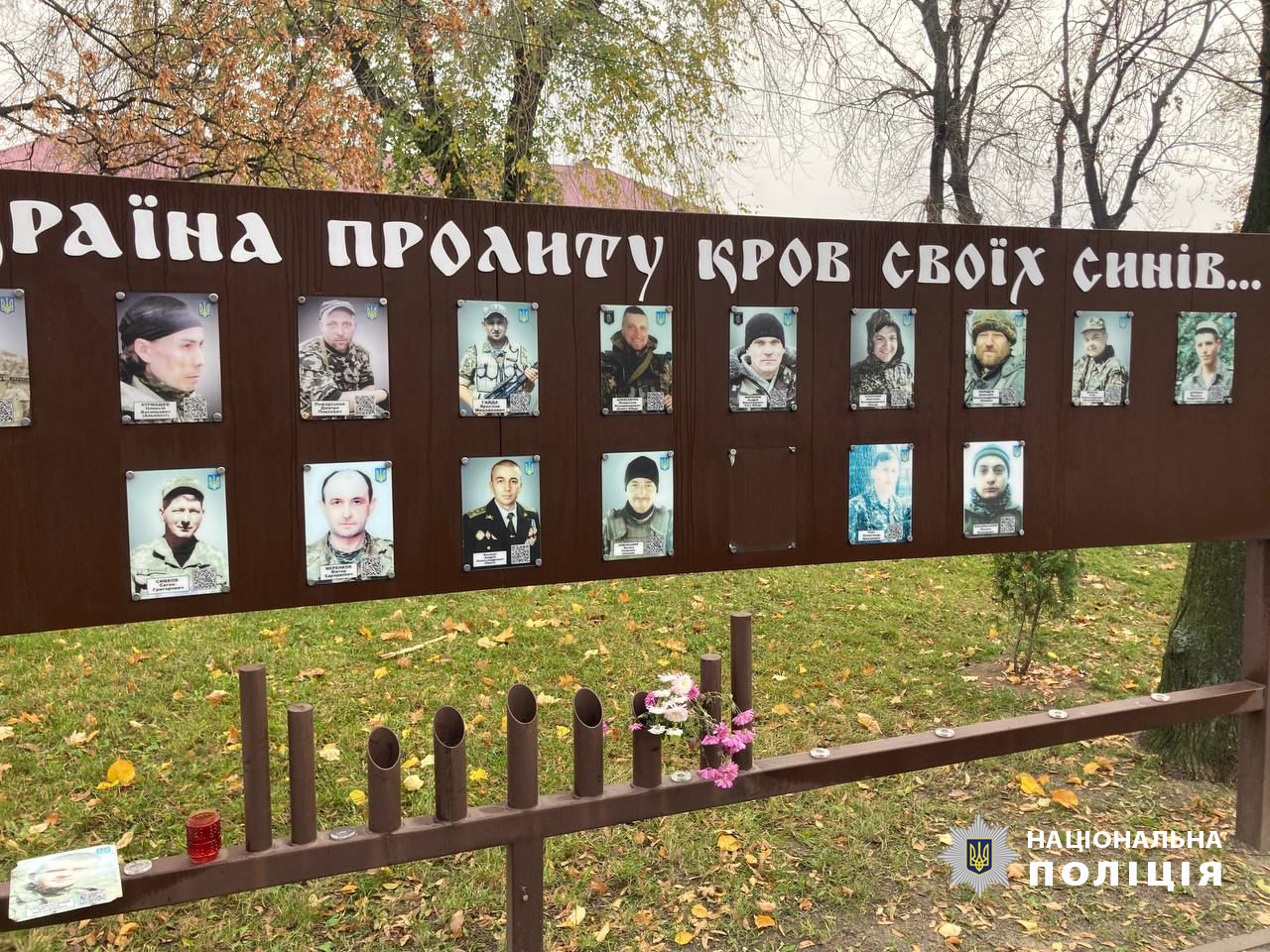 Уманські поліцейські встановлюють особу, яка зірвала фото з меморіальної дошки Героям