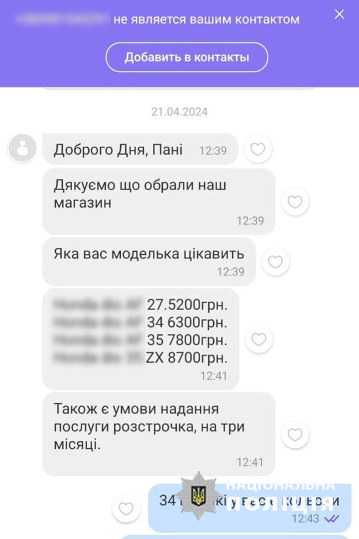 Продовжуються заходи щодо встановлення й інших можливих потерпілих. Якщо ви постраждали від дій шахраїв, просимо звернутися до управління поліції.