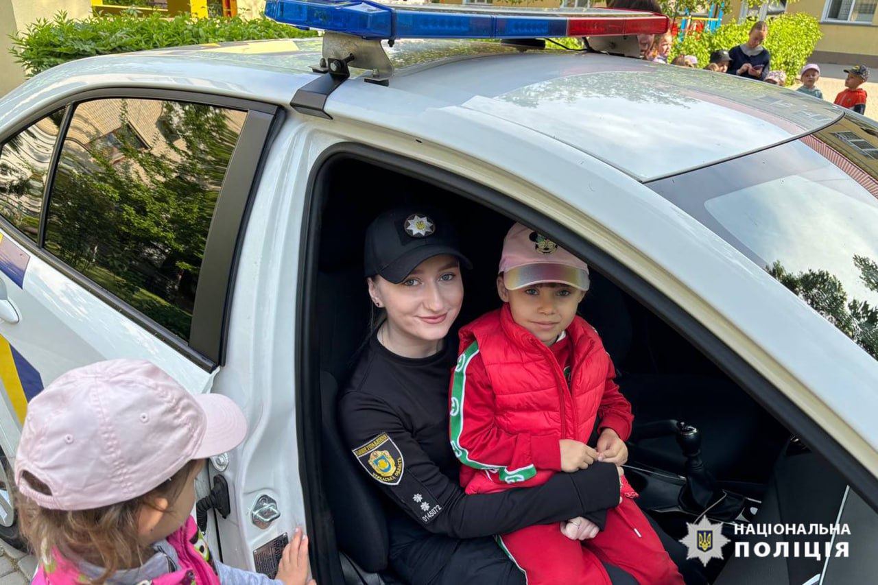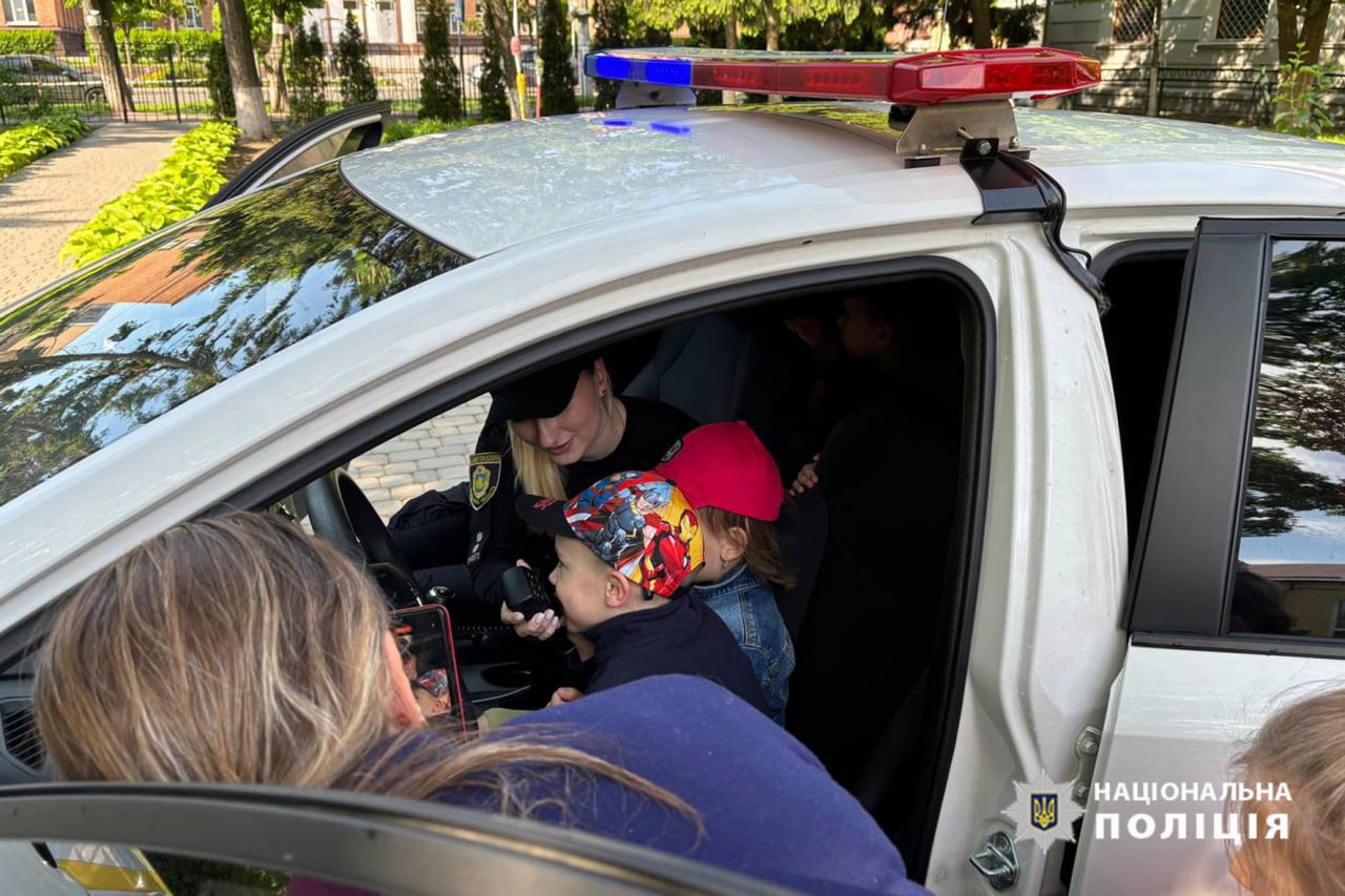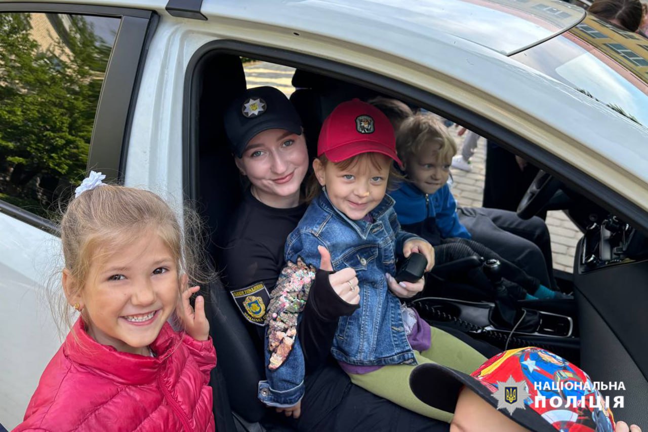 Також, малеча мала змогу відчути себе справжніми правоохоронцями та побувати у службовій автівці поліцейських.