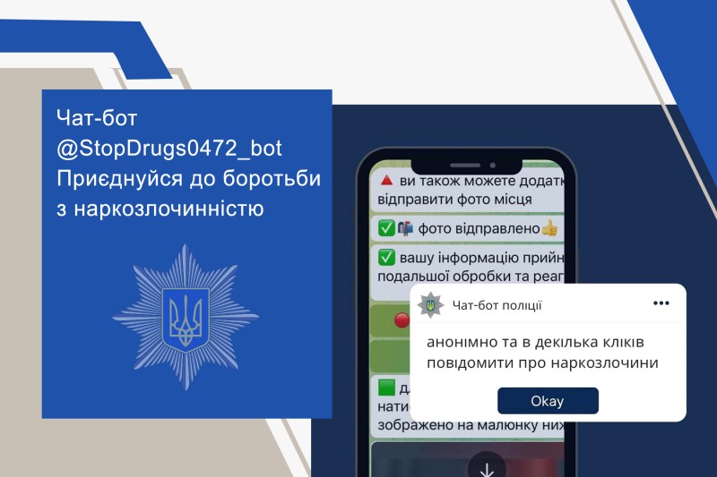 Активно долучайтеся до чат-боту @StopDrugs0472_bot та повідомляйте про правопорушення.