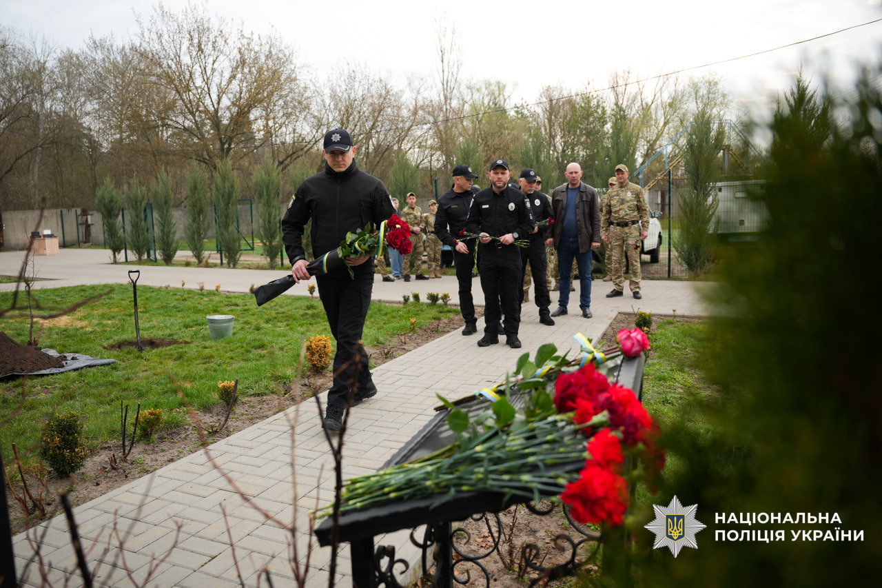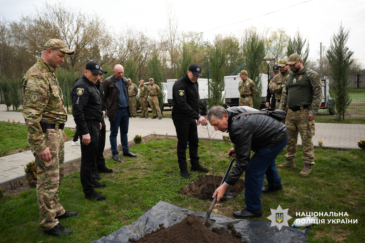 На знак вічної шани та як символ незламності життя, поліцейські разом із родиною Сергія висадили на території кінологічного центру молоді дерева.