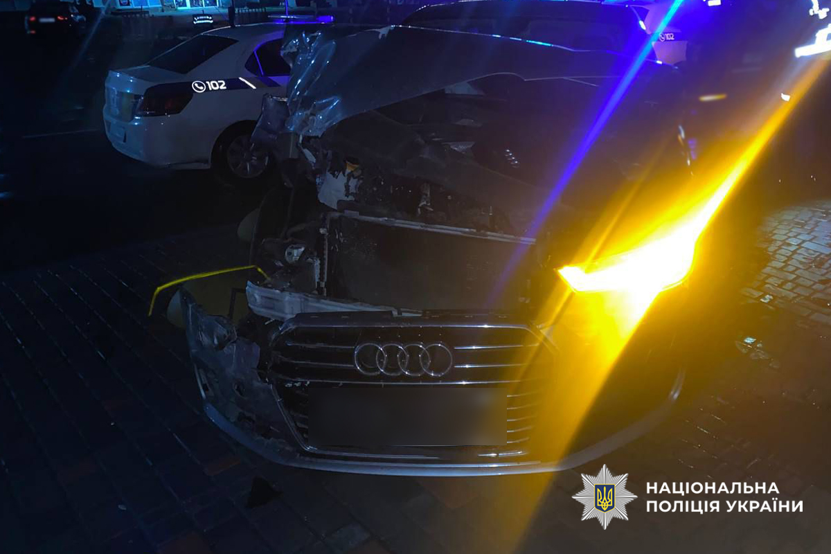 Близько 22:00 години поліцейські відділу реагування патрульної поліції отримали повідомлення про ДТП без постраждалих за участі водія Audi. Керманич не впорався з керуванням та в'їхав у два припарковані авто. Далі некерований транспортний засіб виїхав на зустрічну смугу руху та зупинився на пішохідному тротуарі.