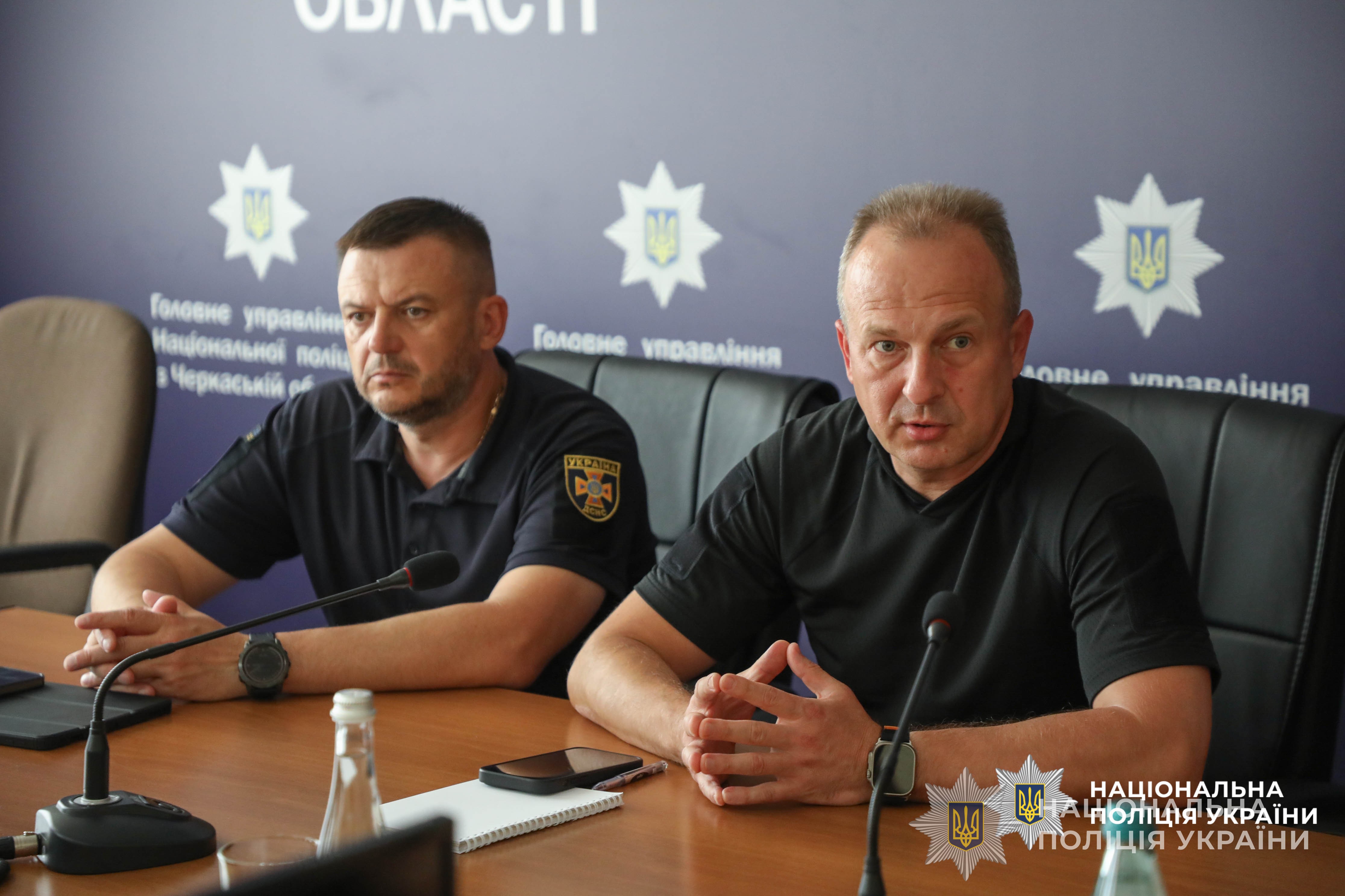 За круглим столом зібралися: начальник обласної поліції Олег Гудима, заступник начальника Олександр Резцов, керівництво черкаських вишів, представники ДСНС, Національної гвардії України, медичних закладів, Департаменту соціальної політики, ветеранського простору “Ветеран ПРО”, Департаменту соціального захисту, Черкаського обласного центру зайнятості, Департаменту “ЦНАП”.