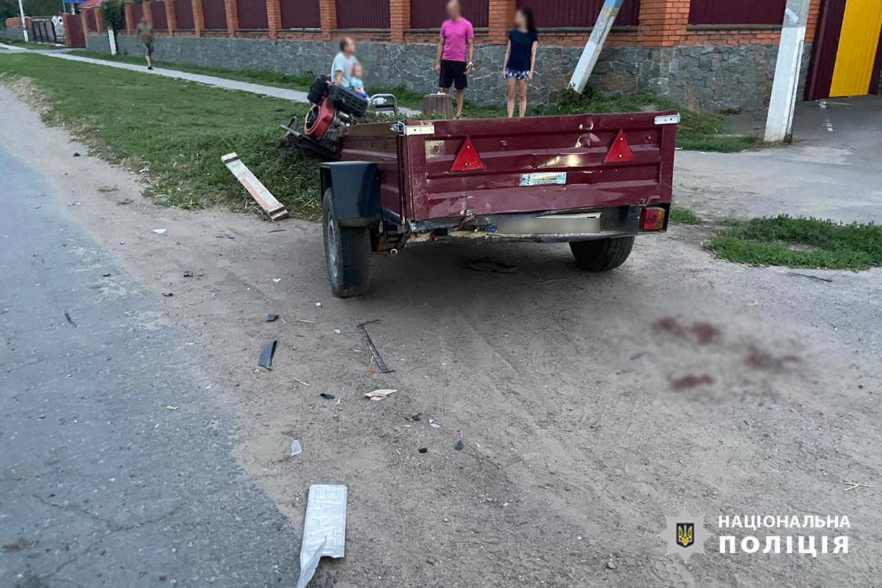 Автопригода сталася 1 серпня близько 19:00 години в місті Монастирище. Попередньо поліцейські встановили, що 40-річний водій Volkswagen Passat рухаючись вулицею Соборною, не дотримався безпечної дистанції та скоїв зіткнення з мотоблоком, що рухався у попутному напрямку.