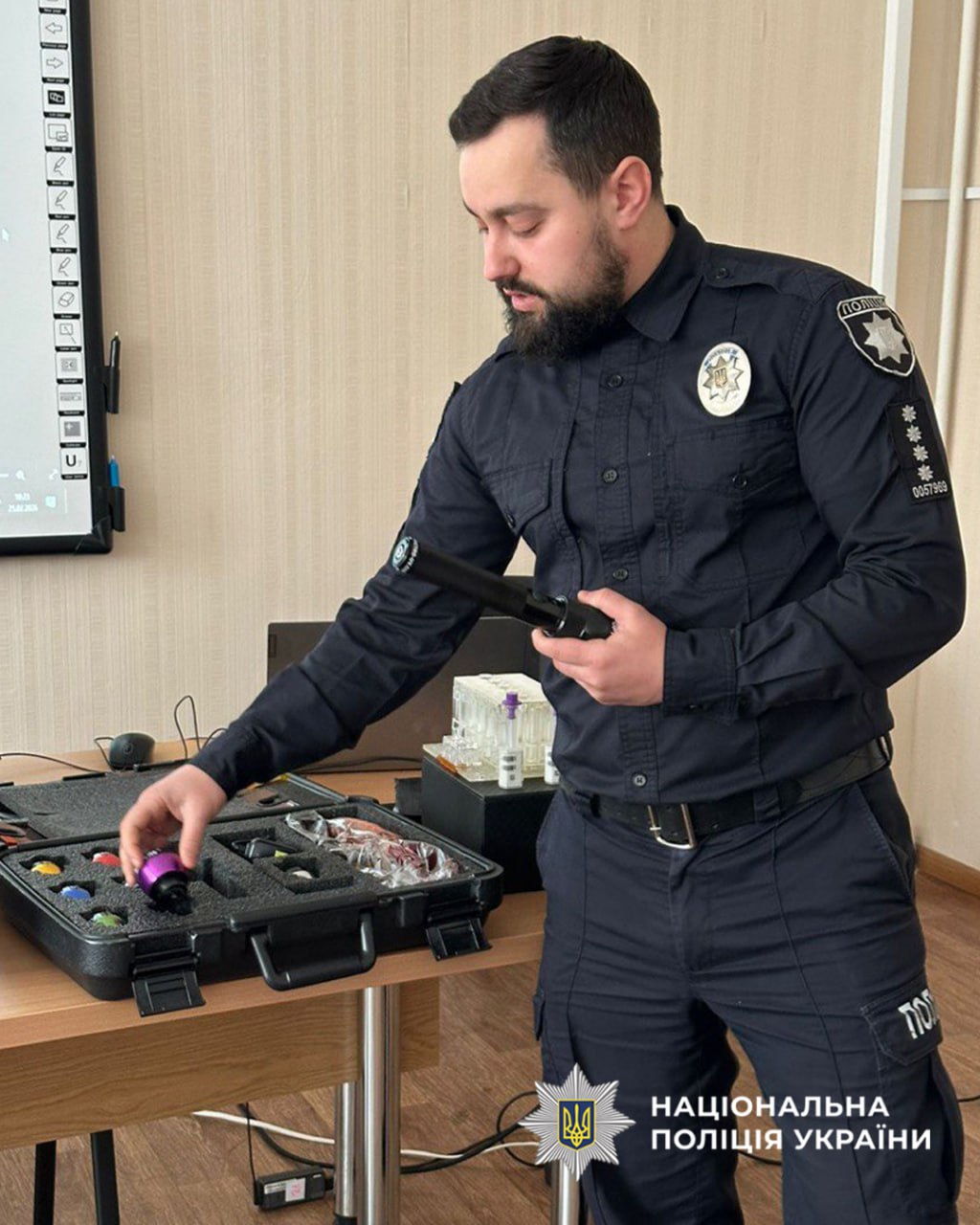 Не менш цікавою стала демонстрація роботи криміналістів. Старший спеціаліст-криміналіст Олександр Білецький ознайомив школярів із вмістом криміналістичних валіз, розповів про особливості огляду місця події, пошук та фіксацію слідів, а також про можливості сучасної криміналістичної лабораторії.