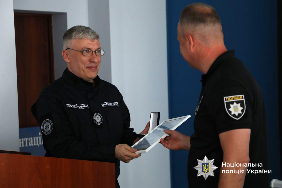 Начальник поліції області Олег Гудима та засновник Експертної служби МВС України, заслужений юрист України, кандидат юридичних наук Іван Красюк, висловили подяку і відзначили працівників Черкаського підрозділу Експертної служби МВС.