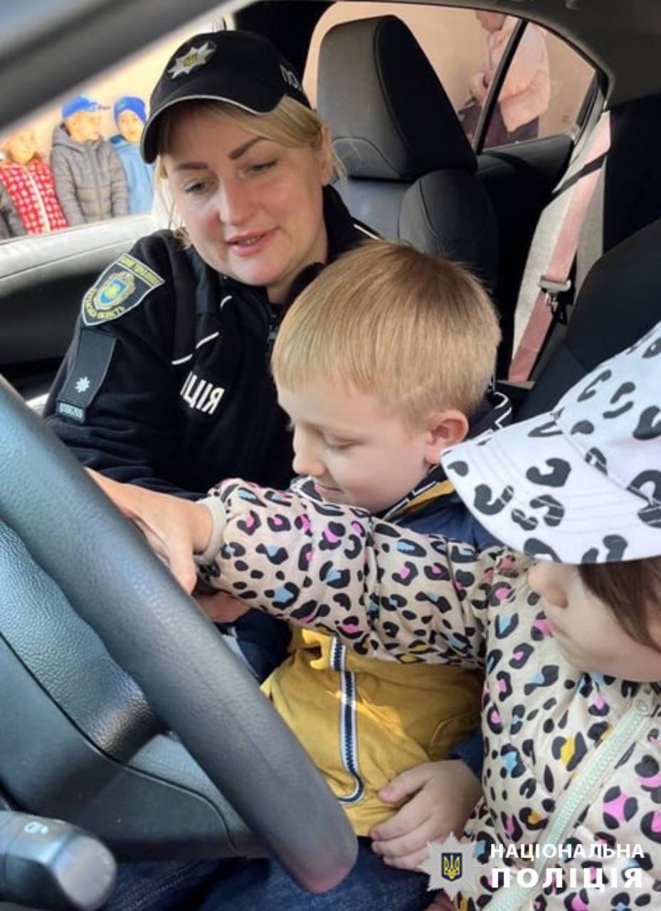 Дітлахи охоче спілкувалися з поліцейськими та ставили безліч запитань. Після спілкування з правоохоронцями малюки посиділи у поліцейському автомобілі.