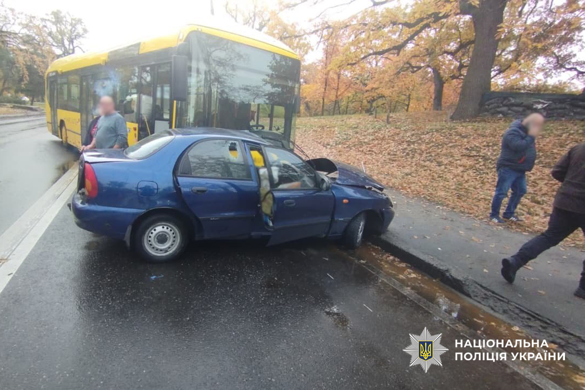 Дорожньо-транспортна пригода сталася вранці 28 жовтня на вулиці Дахнівській. Попередньо, 70-річний кермувальник автомобіля «Daewoo Lanos» не надав переваги у русі та здійснив зіткнення з автобусом «VOLVO», під керуванням 52-річного водія. Внаслідок аварії водій легковика та його 71-річна пасажирка отримали травми та були госпіталізовані до лікарні. Пасажири та водій автобуса не травмувалися.