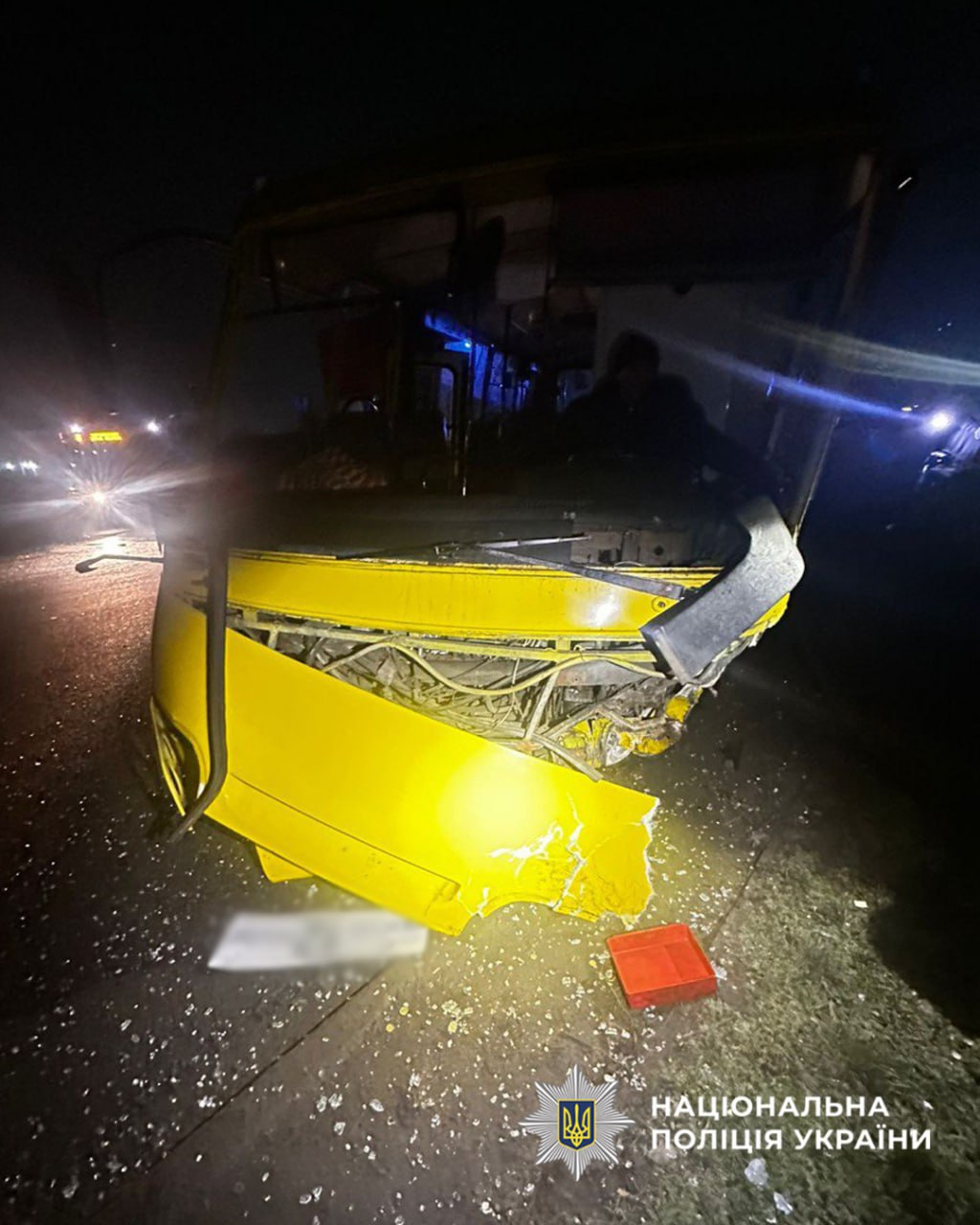 У результаті зіткнення обидва кермувальники отримали тілесні ушкодження та були доставлені до лікарні. На момент аварії пасажирів у салоні автобуса не було.